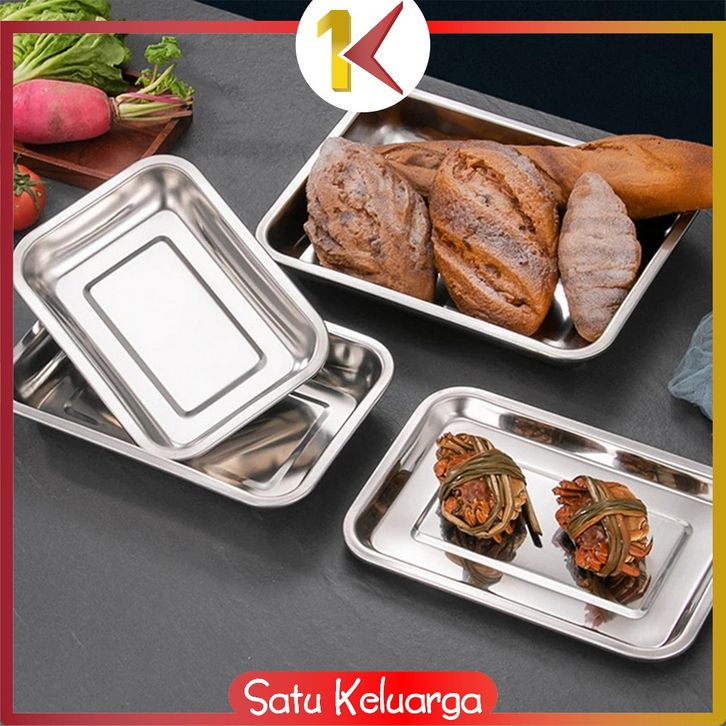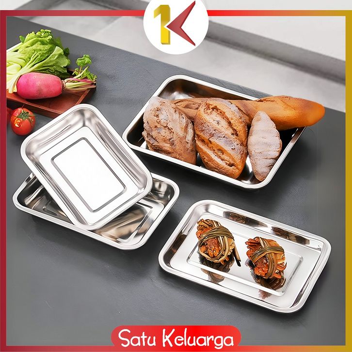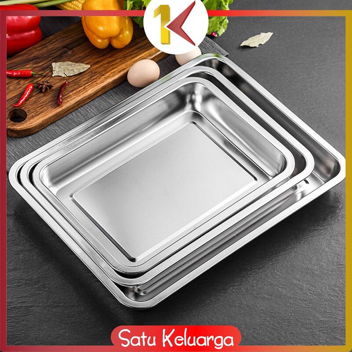 SK-C1217 Nampan Persegi Bahan Stainless Steel Premium Wadah Makanan / Baki Tray Nampan Loyang Kotak Untuk Kue Roti Anti
