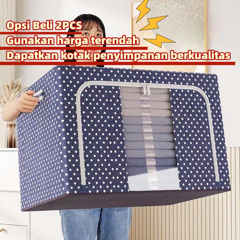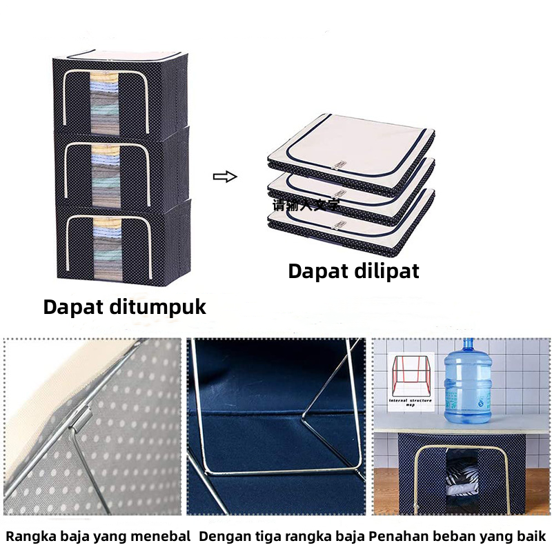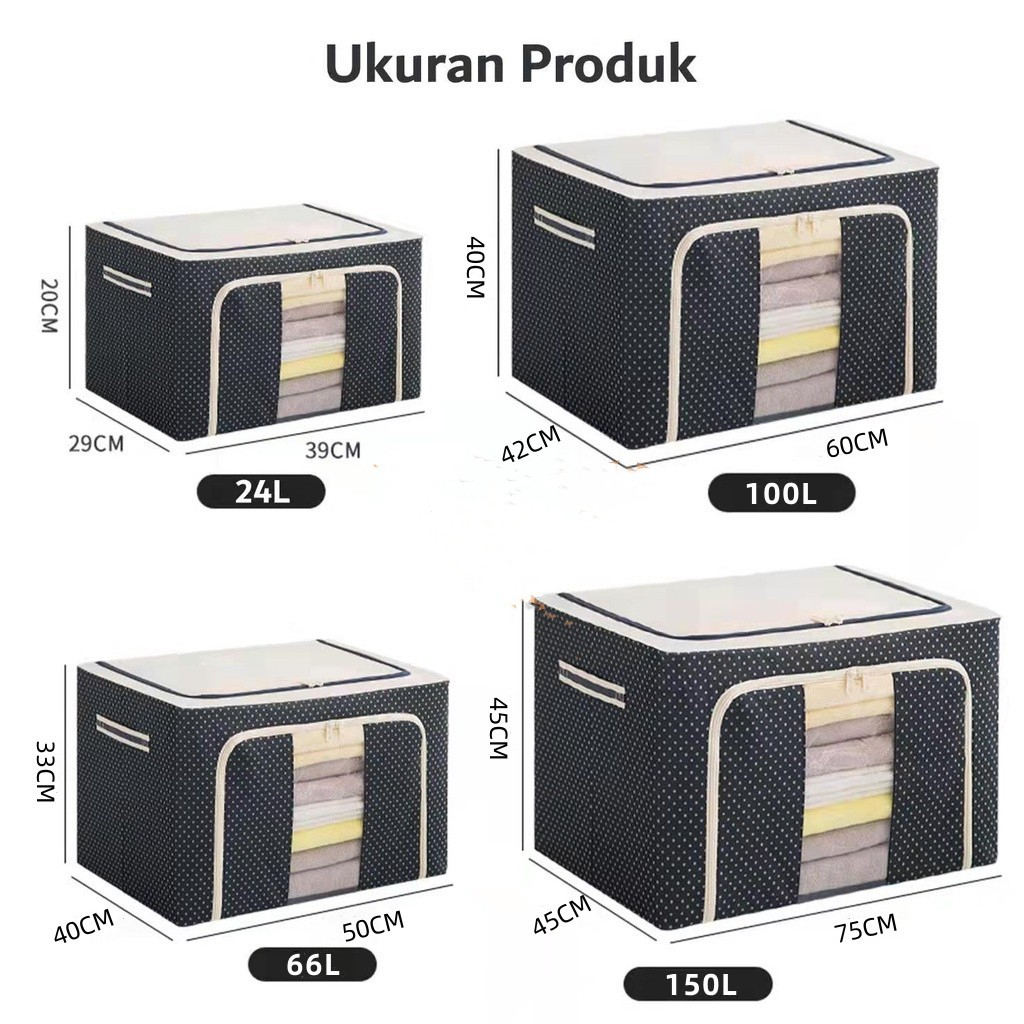 66L/100L/150L KOTAK PENYIMPANAN BAJU STORAGE BOX ORGANIZER PAKAIAN SERBAGUNA MAINAN BOX TAHAN LEMBAB STORAGE BOX BAJU BESAR ORGANIZER FRAME BAJA DOUBLE ZIPPER LARGE