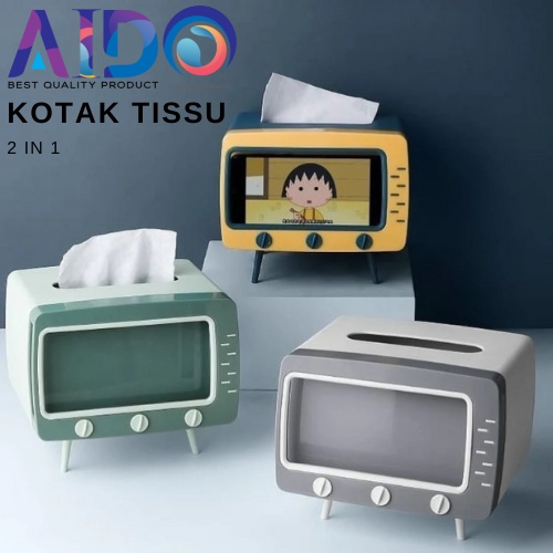 KOTAK TISSUE BOX ORGANIZER BENTUK TV HANDPHONE HOLDER TEMPAT TISU
