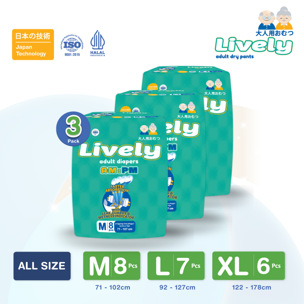 LIVELY POPOK DEWASA PEREKAT SIANG MALAM (3PCS)