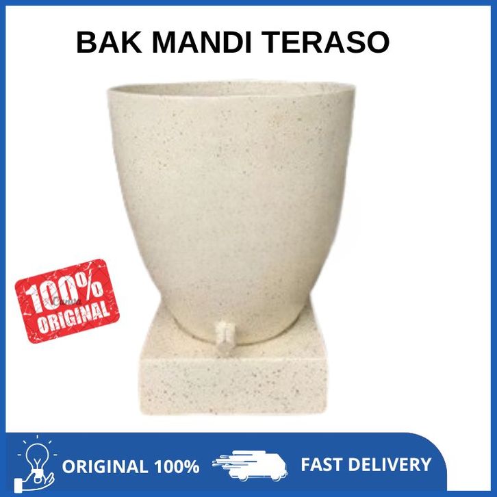 Bak Mandi Teraso Model Kapsul Putih – Guci Air Batu Alam Type 50 Minimalis Elegan
