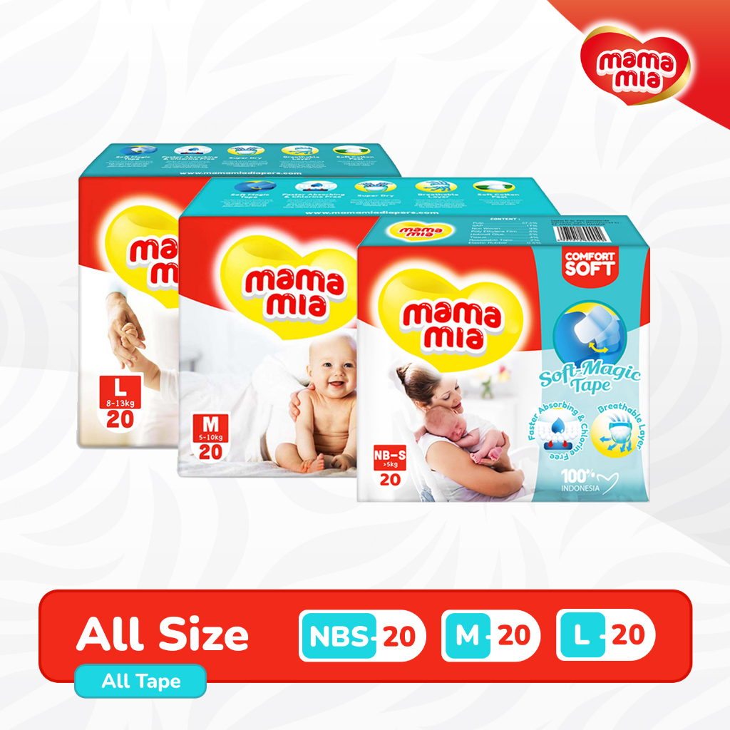 MAMAMIA SOFT MAGIC PEREKAT TAPE S20 M20 L20 POPOK BAYI