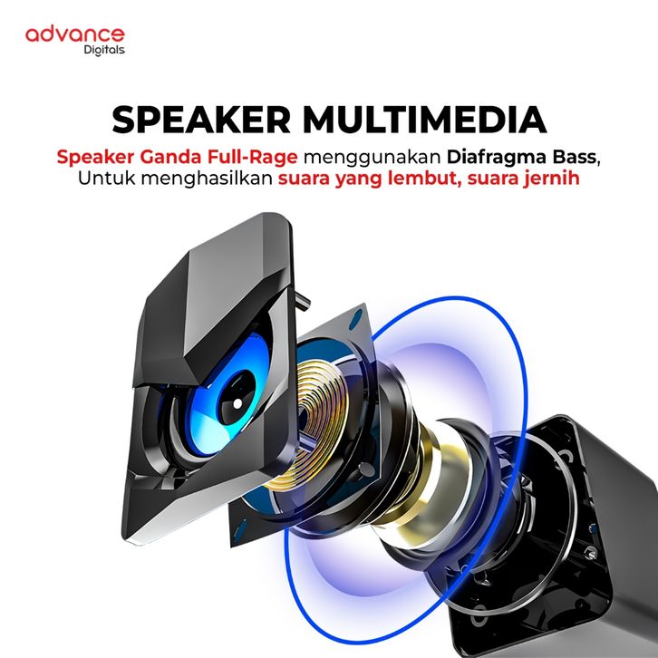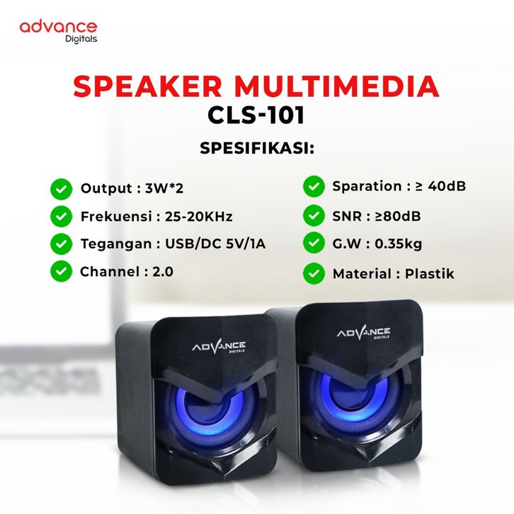 Speaker Mini Aktif Super Full Bass Polytron Jbl Advance CLS-101 Multimedia 2.0 Channel Backlit PC Laptop Komputer LARIS