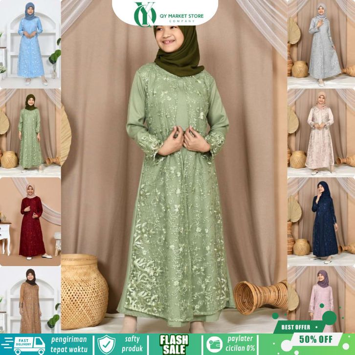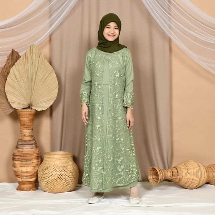 Dijamin RealPict GAMIS HANI ANAK M DiAXI TANGGUNG 9 14th HENA DRESS MUSLIM REMAJA BRUKAT TILE BORDIR LEBARAN IDUL FITRI