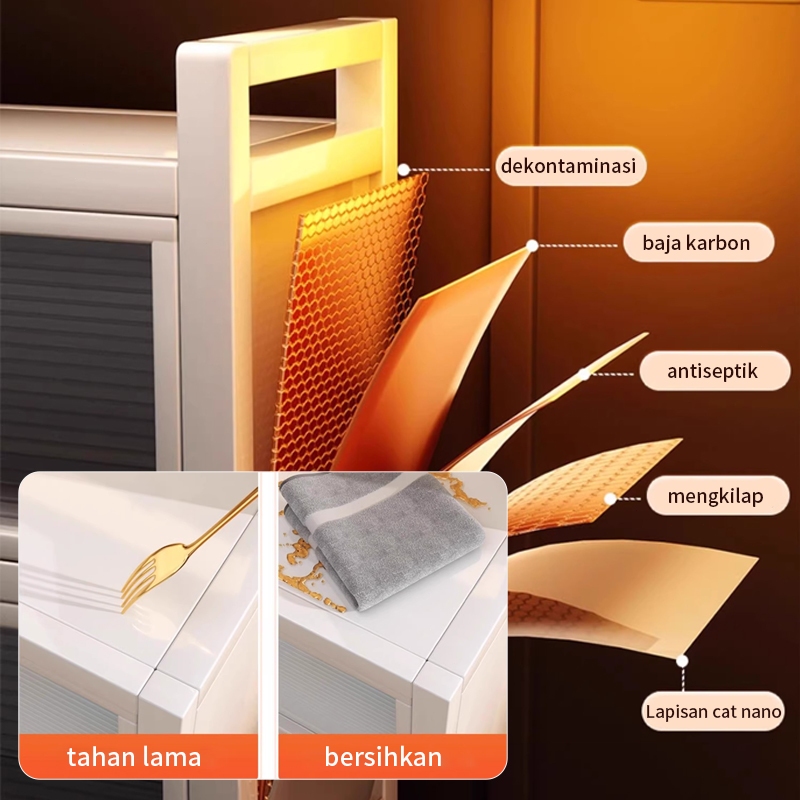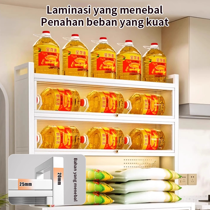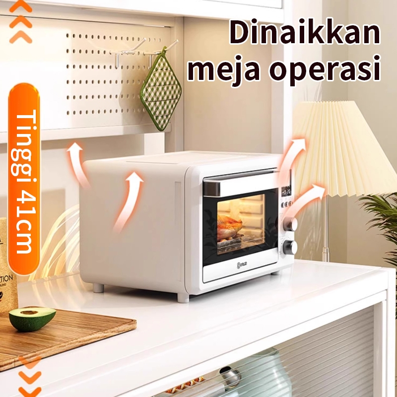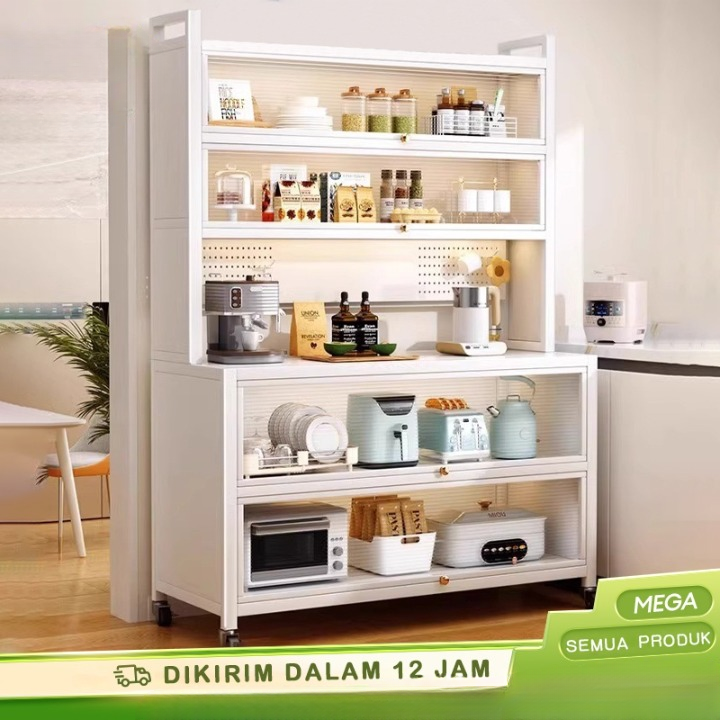 Lemari Dapur Minimalis Modern Kaca Keramik Rak Piring Tertutup Serbaguna Rak Penyimpanan Oven Microwave Aluminium Termur