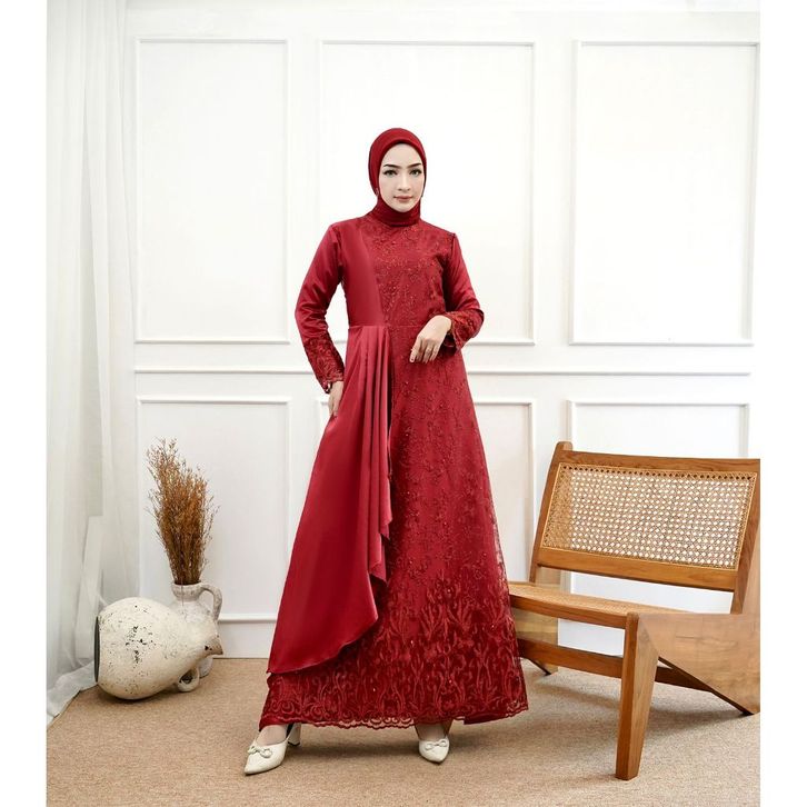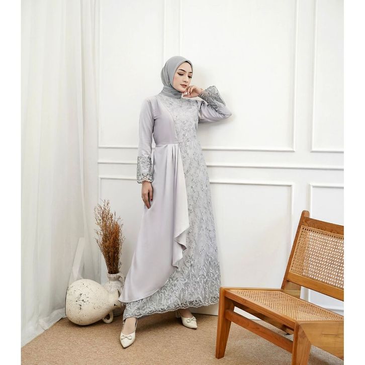 Dijamin RealPict Gamis Mafaza Brokat DijamiTilLe Bordir Maxi Dress Lebaran Brukat Tulle Baju Muslim Dres Muslim Pesta
