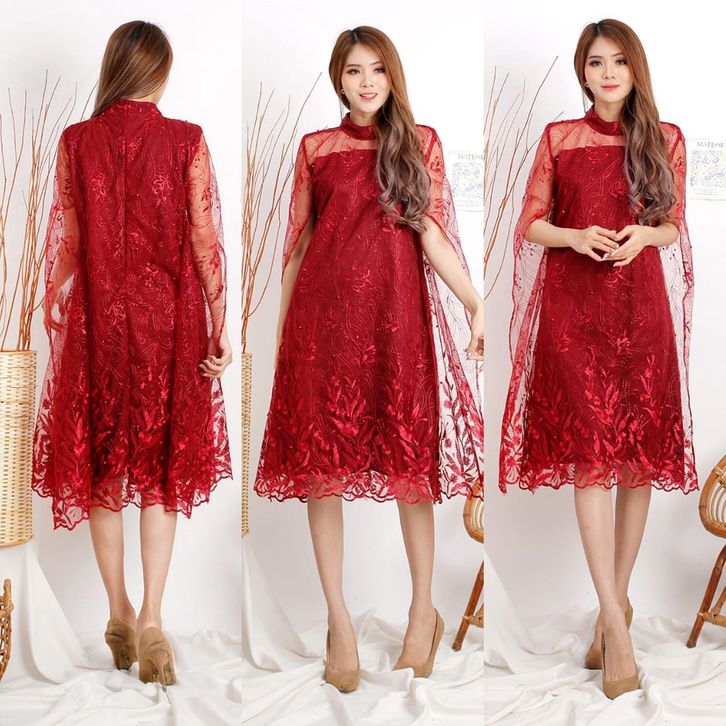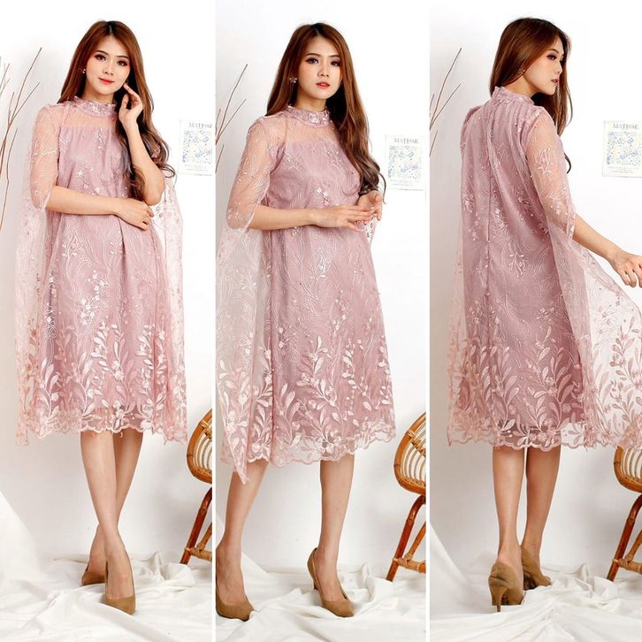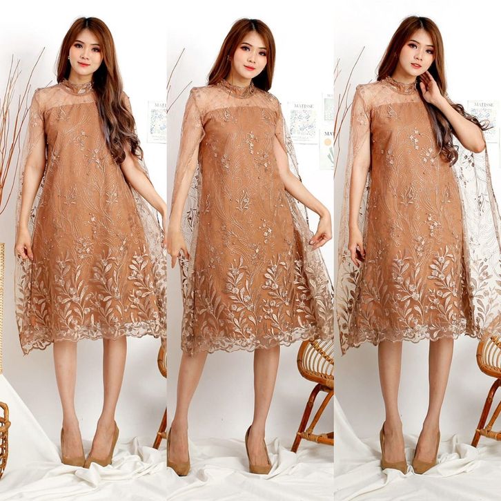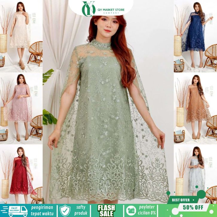 Dijamin RealPict Dress Gretha Brukat Til Dijamin RealPict Drese Bordir Gliter Tulle Brokat Dres Pesta IMLEK Tille Murah