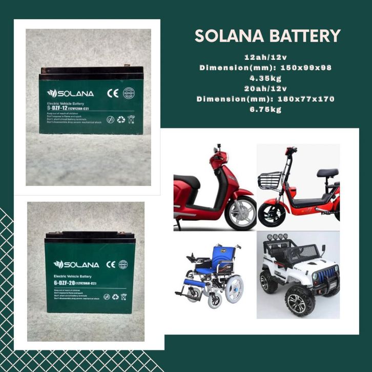 KERABAT STORE Battery Aki Baterai AccKERABAT Su SOLANA 12V 20AH Electric Vehicle Baterai Sepeda Listrik KUALITAS PREMIUM
