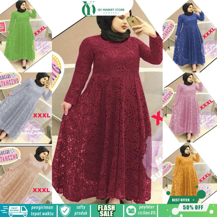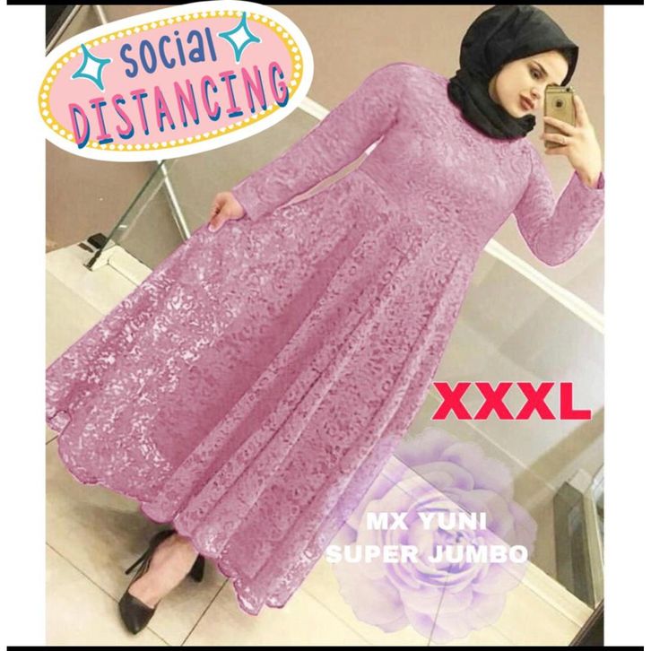 JAMIN REALPICT GAMIS YUNI BRUKAT JA TEBAL ALLSIZE S XL JUMBO XXL BUSUI BIGSIZE MAXI DRESS MUSLIM BRUKAT TULANG TIMBUL