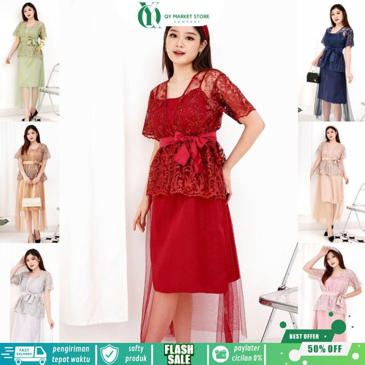 Jamin RealPict 2in1 Dress Gracia Tile P Jaminremium Inner Outer Dres Brukat Pesta Tile Bordir Dress Kondangan Dress