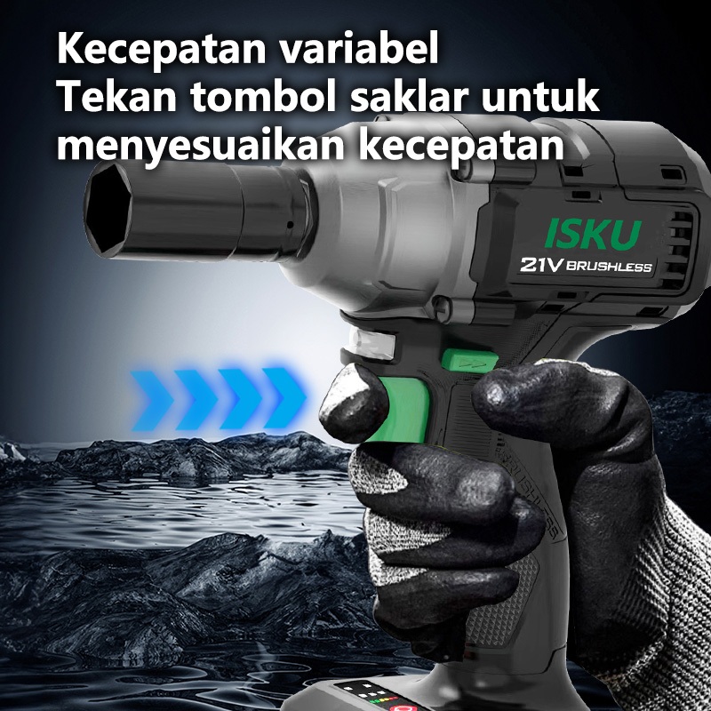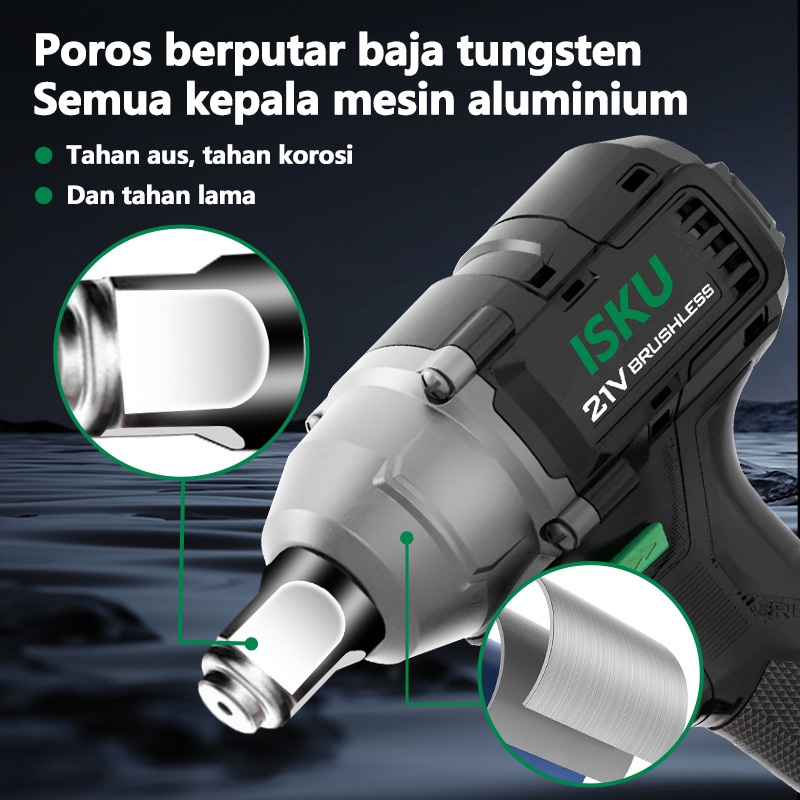 ISKU Cordless Impact Wrench Brushless 21V 350N.M Torsi Battery 350N.M Mobil Kunci Impact Wrench/21V Impact Baterai