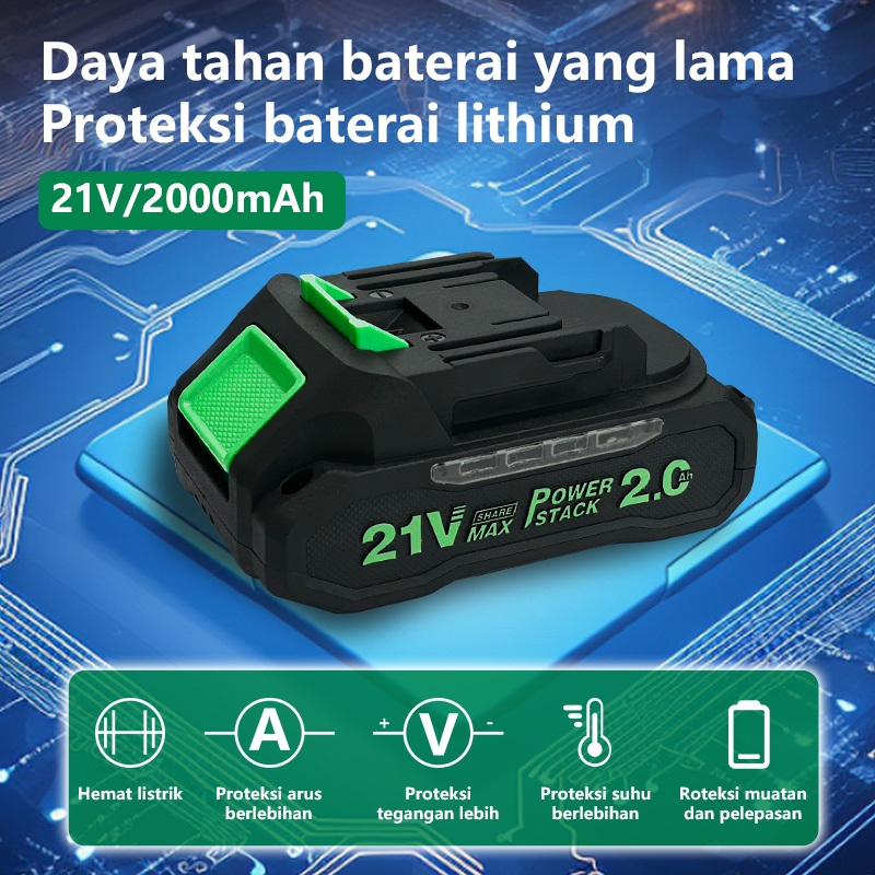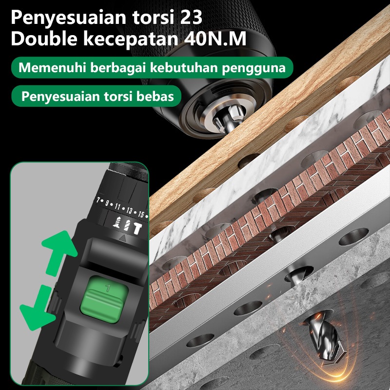 LITHIUM MESIN BOR MULITIFUNGSI 21V 2000MAH BATTERY CORDLESS DRILL SET TORSI MAKSIMUM 40N.M BRUSHLESS BOR BATERAI ISKU
