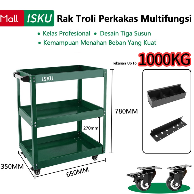 TROLI BENGKEL 3 SUSUN RAK PERKAKAS TROLLEY GRATIS KERANJANG ALAT ISKU