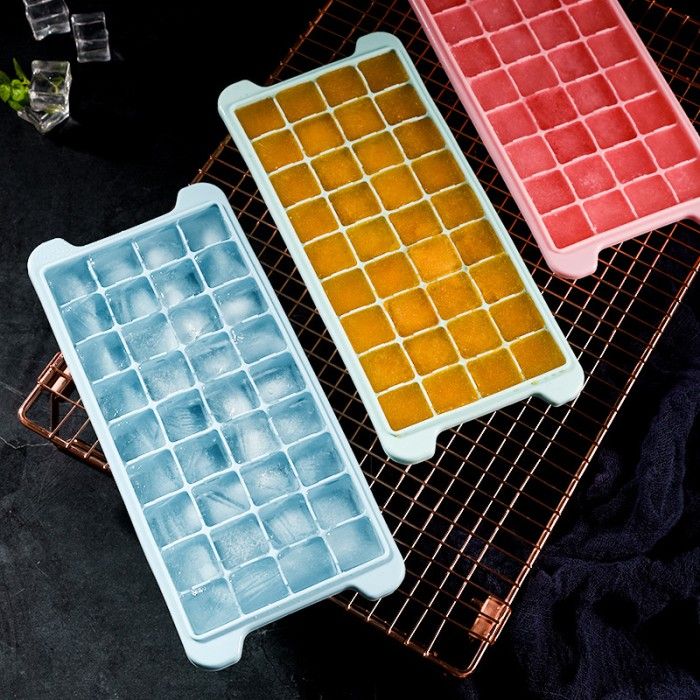 Cetakan Es Batu Silikon 24 Kotak 36 Kotak dengan Penutup Ice Cube Tray