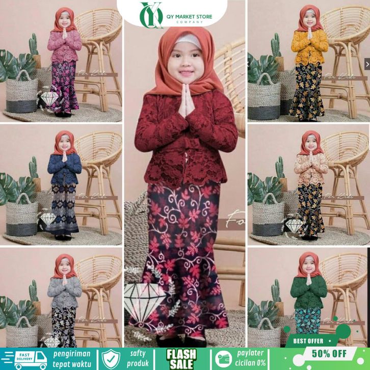 RealPict Set Shireen Kids Kebaya Bruka RealPict Set Shireen Kit Cord Tulang Anak Rok Batik Duyung 7 Warna Set Shiren