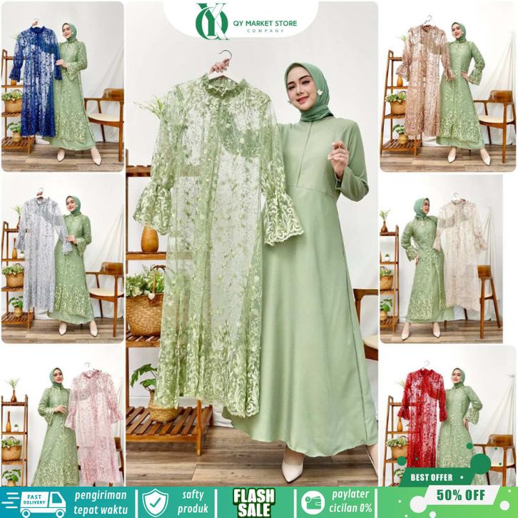 Jamin RealPict OUTER Amanda Busui B rukat Tile Bordir Lace Outer Dress Outer Gamis Tille Brokat Outer Maxi Kondangan