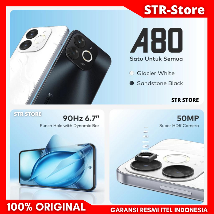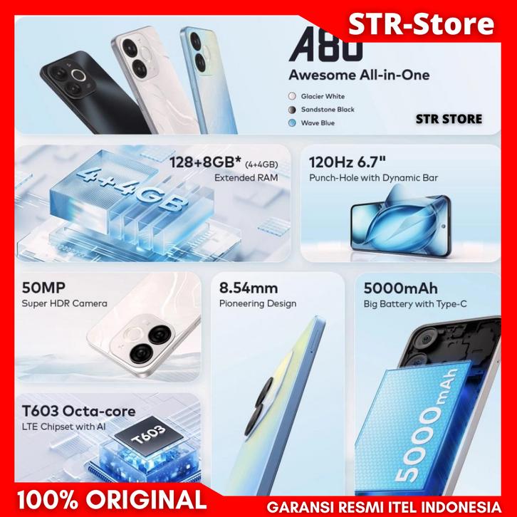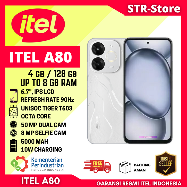 ITEL A80 4/128 GB ANDROID GARANSI RESMI ITEL A 80 4/128 GB RAM 4+4