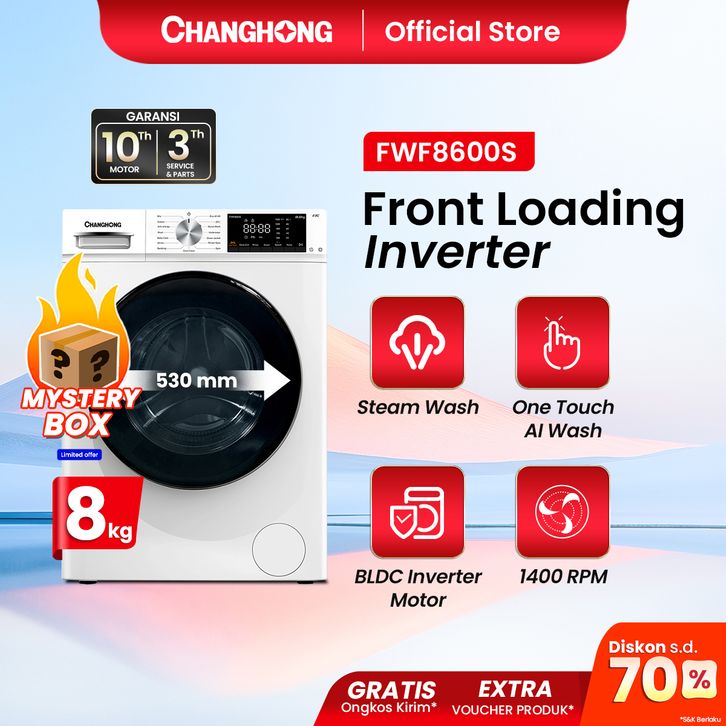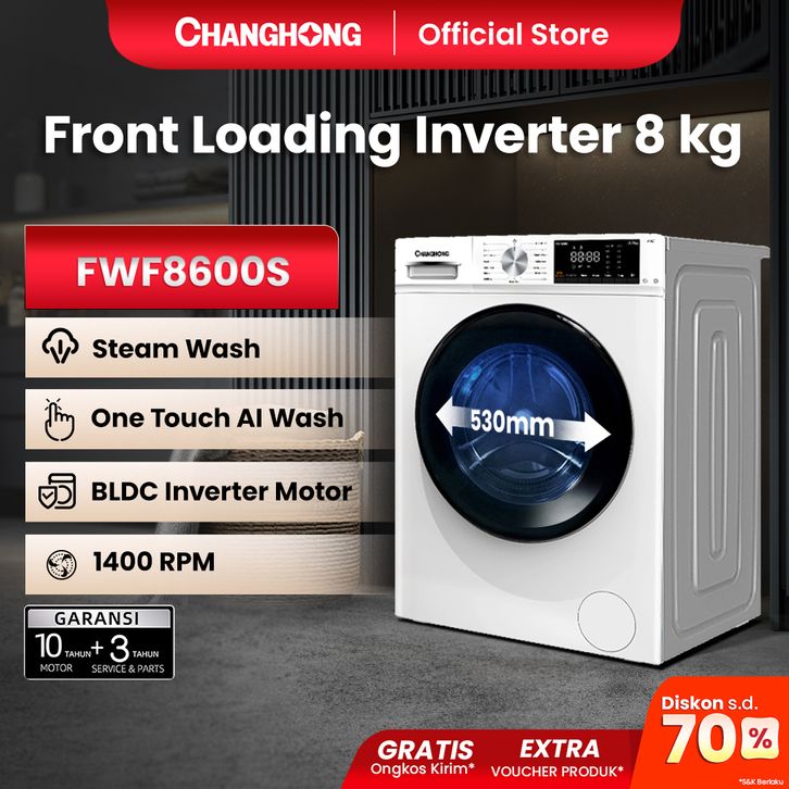 Changhong Mesin Cuci Smart Front Loading Kapasitas 8 kg Model FWF8600S