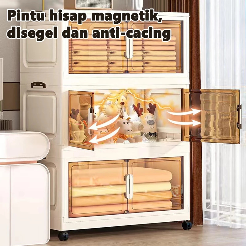 Lemari Pakaian Plastik Susun Ekstra Besar Rak Serbaguna Wardrobe Storage