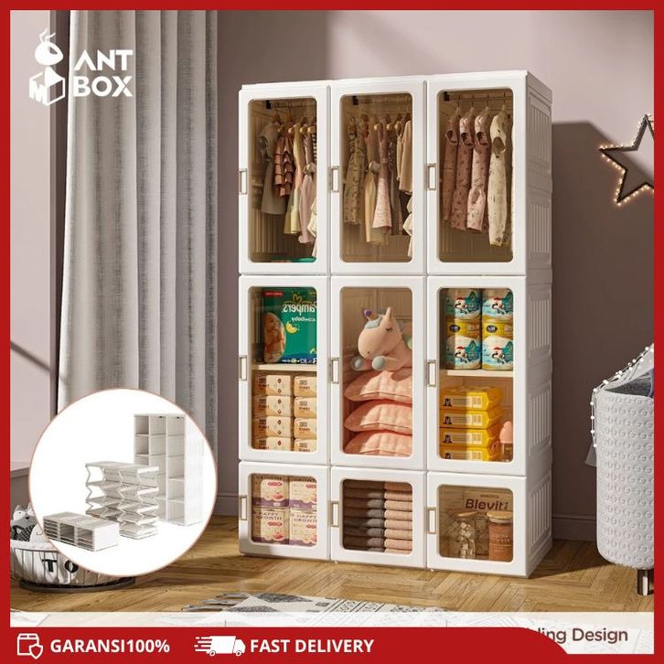 Lemari Pakaian Plastik 6 Box - 15 Box 360L- 890L Wardrobe Pintu Transparan Multifungsi