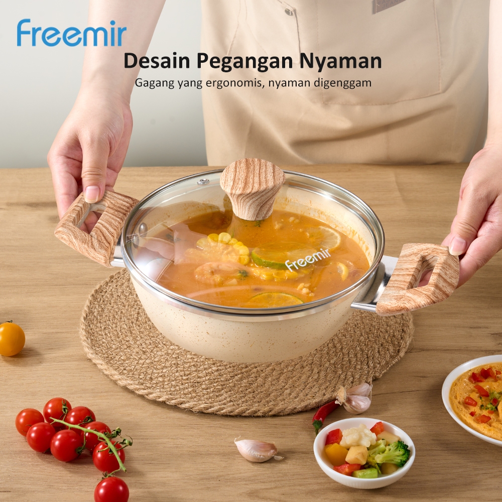 freemir Wajan Beige 20 cm Kedalaman 7 cm Dengan Tutup Bahan Granit Anti Lengket Wajan Ser