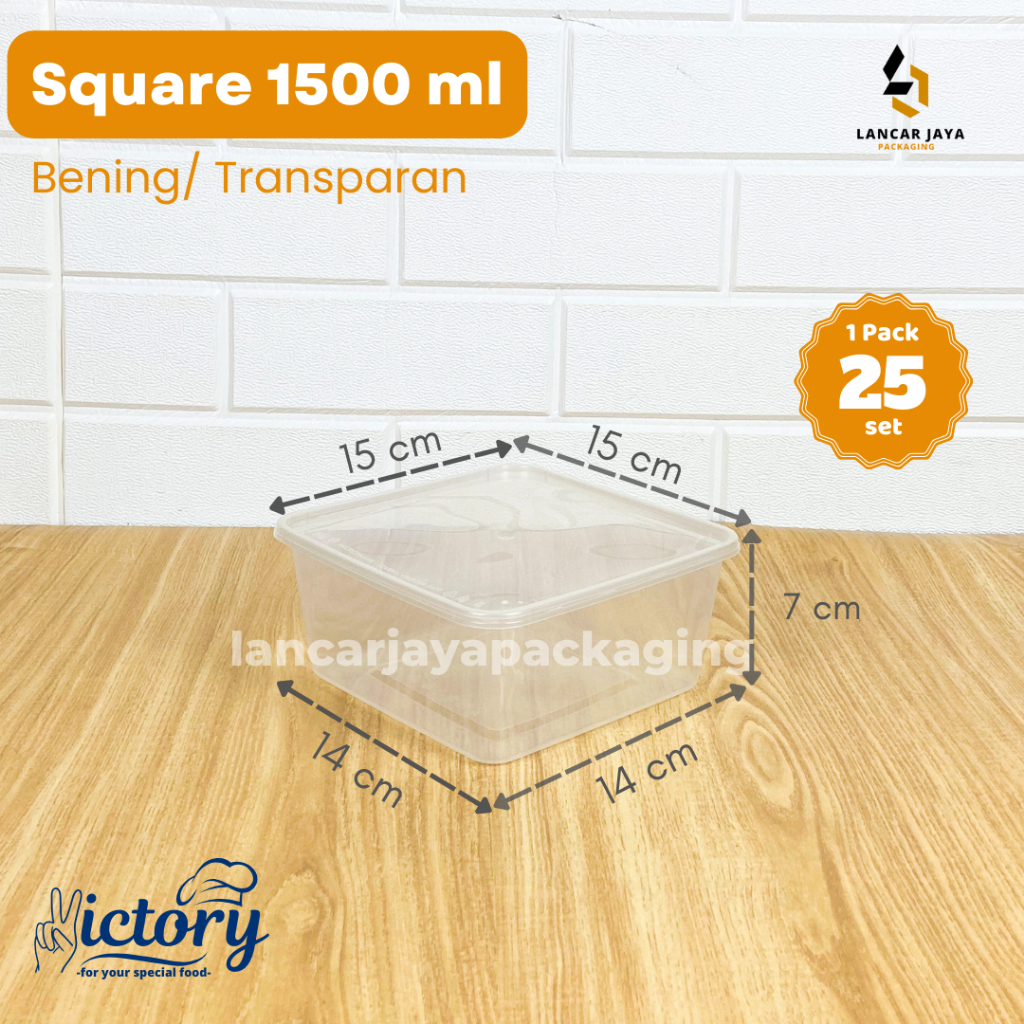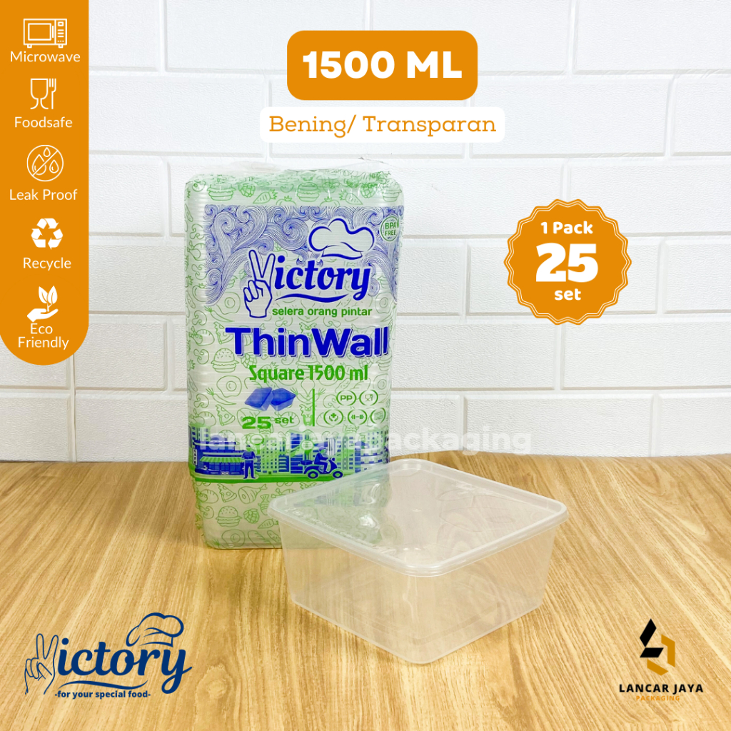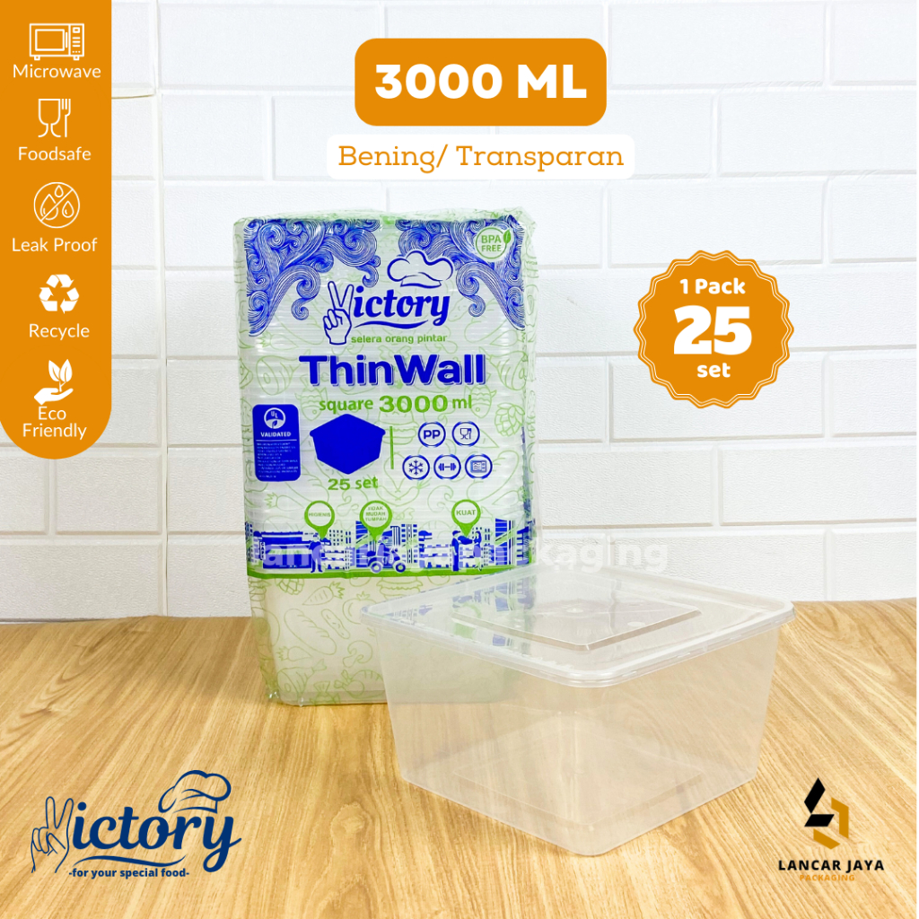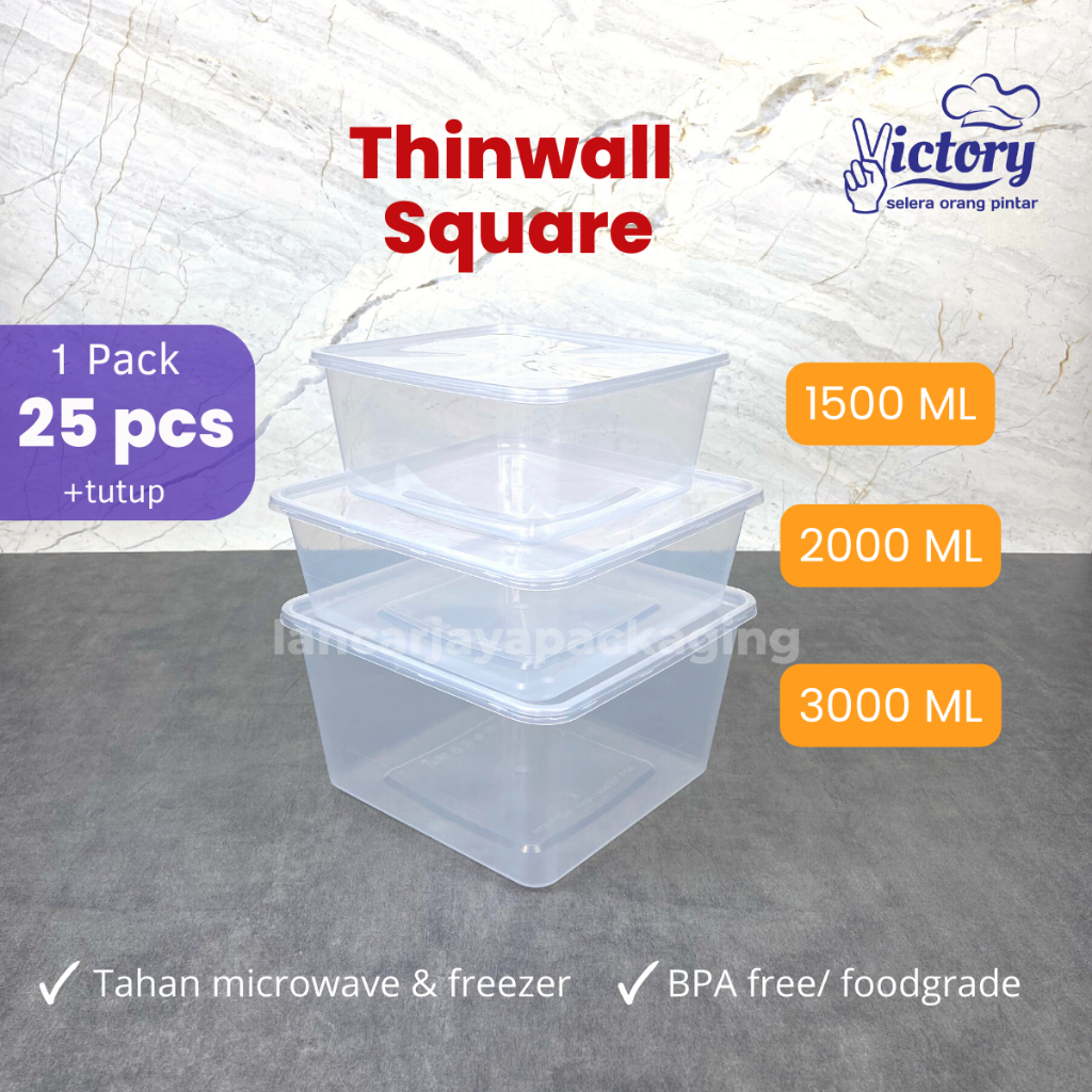 [TERLARIS] [25 PCS] THINWALL SQUARE VICTORY 1000ML 1500ML 2000ML 3000ML KOTAK MAKAN WADAH PLASTIK PERSEGI