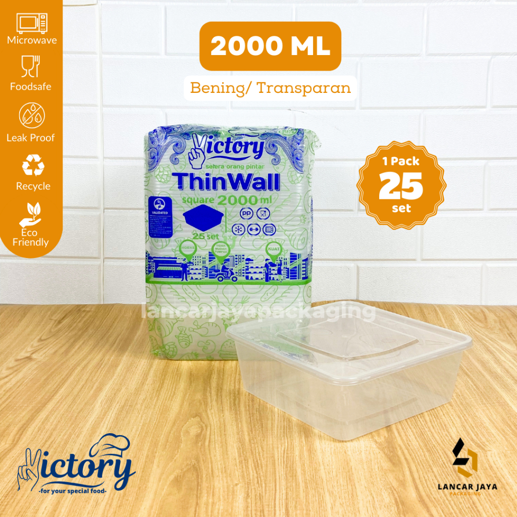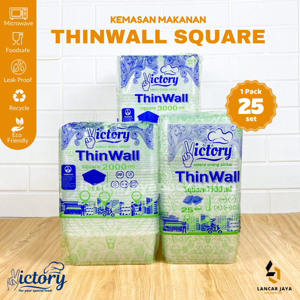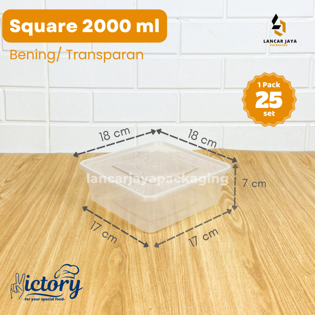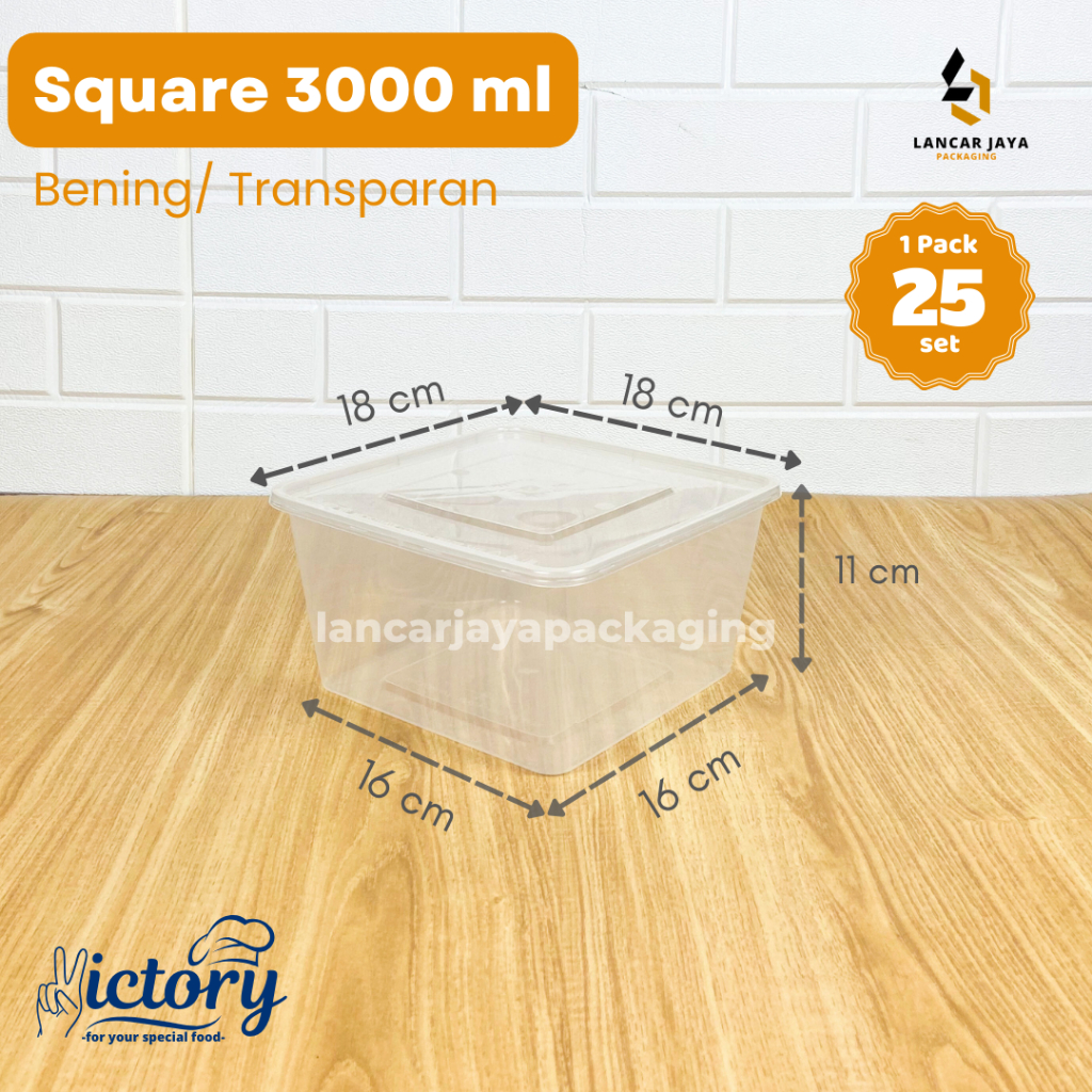 [TERLARIS] [25 PCS] THINWALL SQUARE VICTORY 1000ML 1500ML 2000ML 3000ML KOTAK MAKAN WADAH PLASTIK PERSEGI