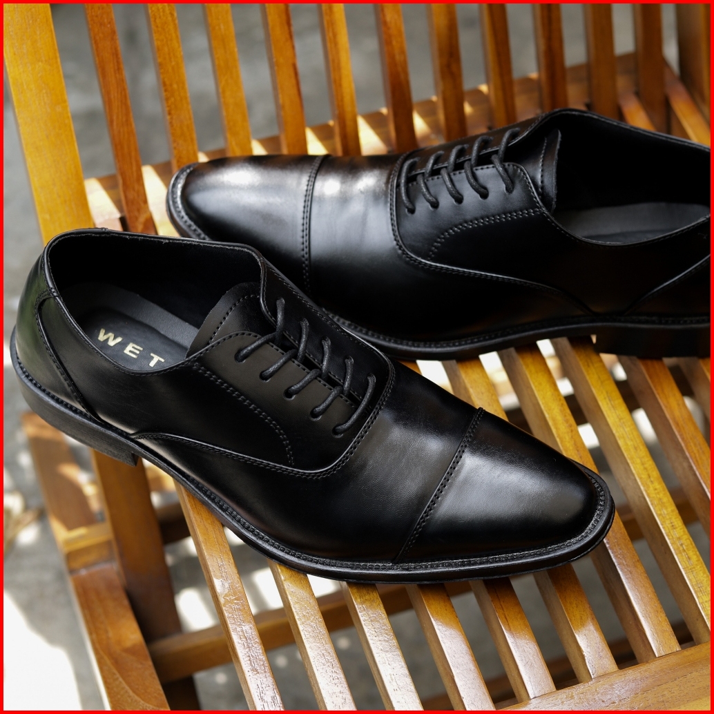 Wetan Nusantara 6 Sepatu Pantofel Pria Formal Oxford Cap Toe Black