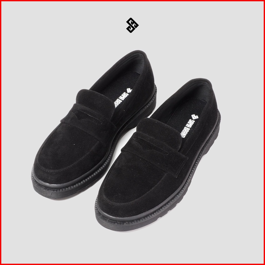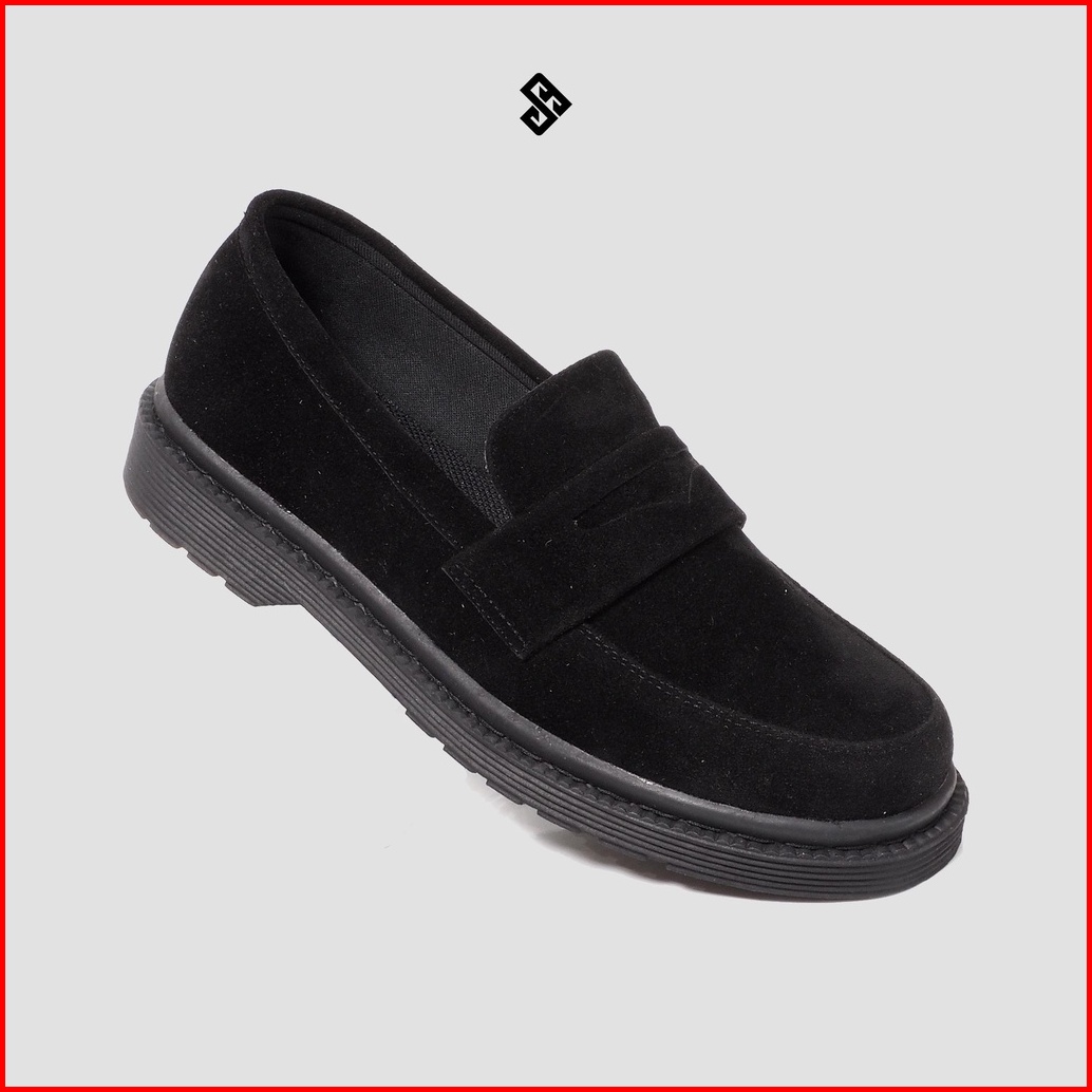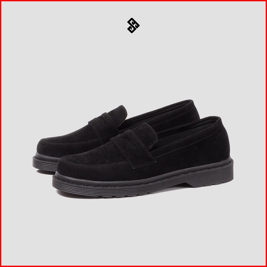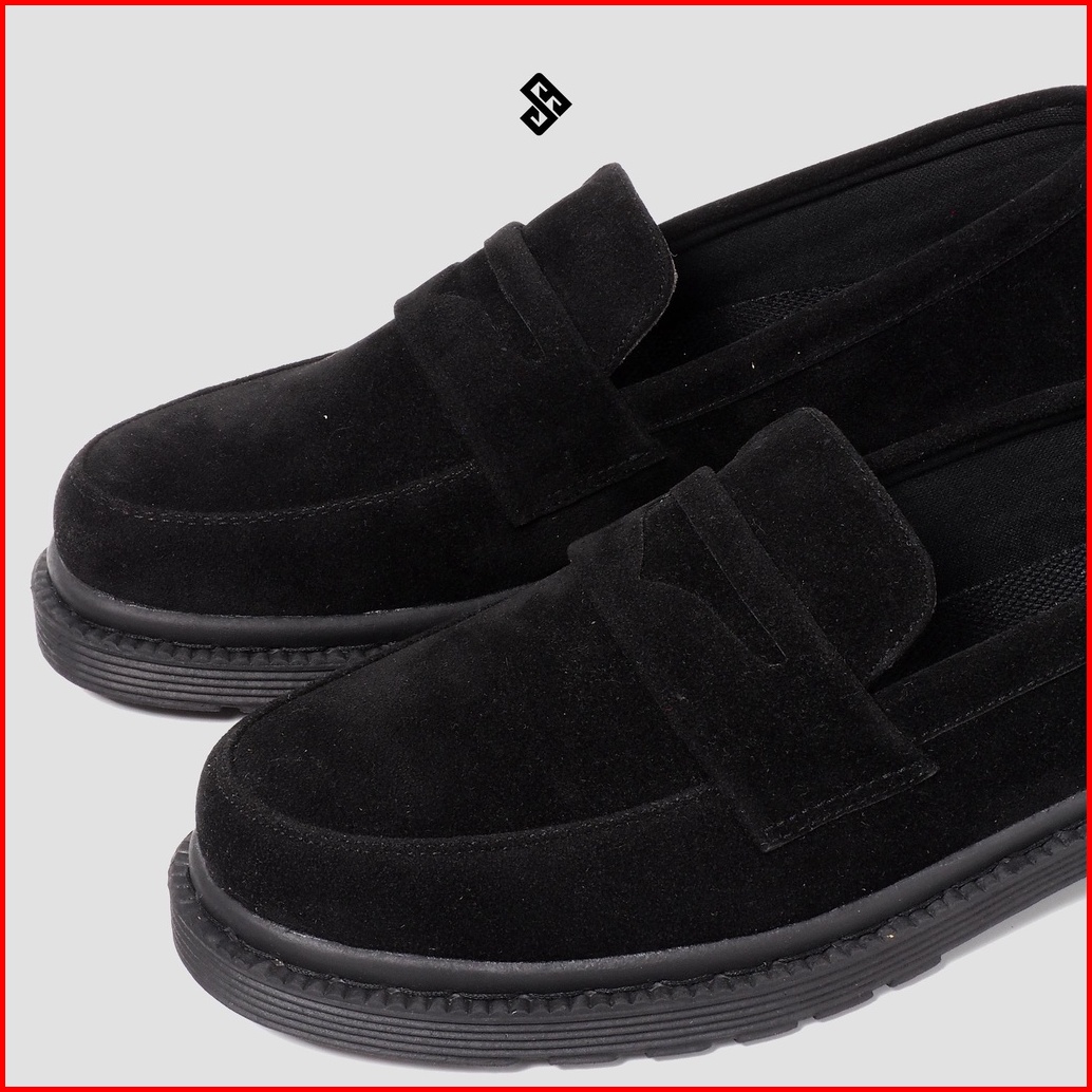 Aiden Suede Black - Sepatu Pria Slip On Loafers Formal Karet Flat Shoes Docmart Polos