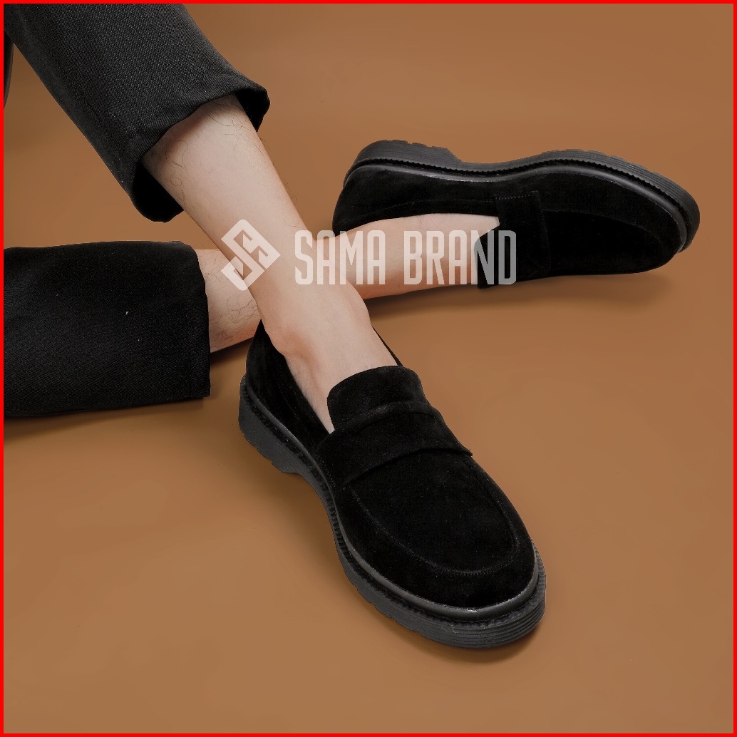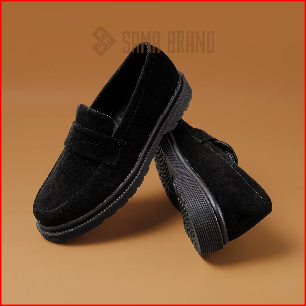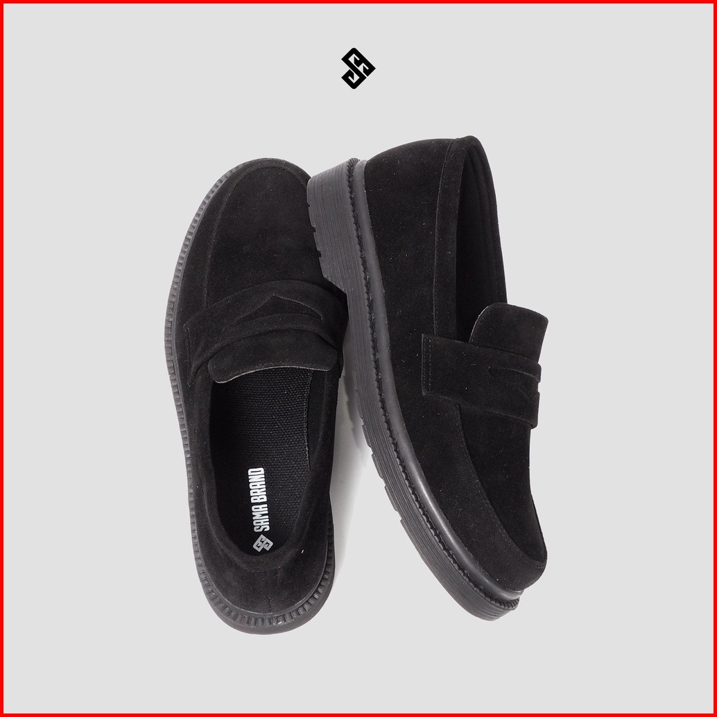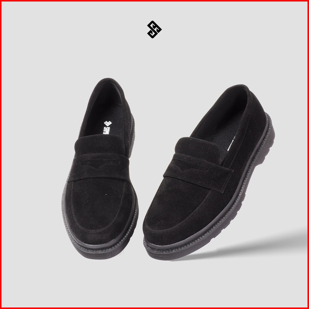 Aiden Suede Black - Sepatu Pria Slip On Loafers Formal Karet Flat Shoes Docmart Polos