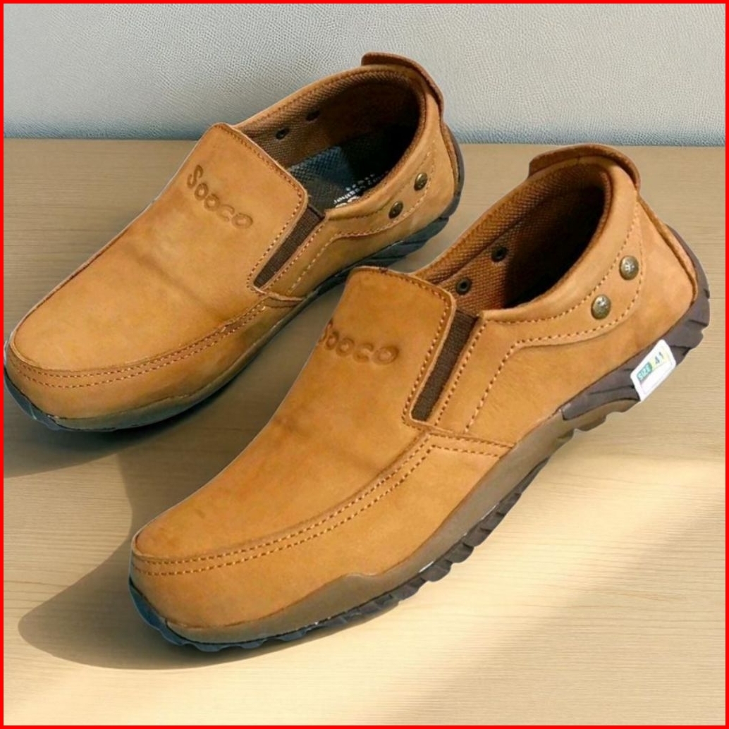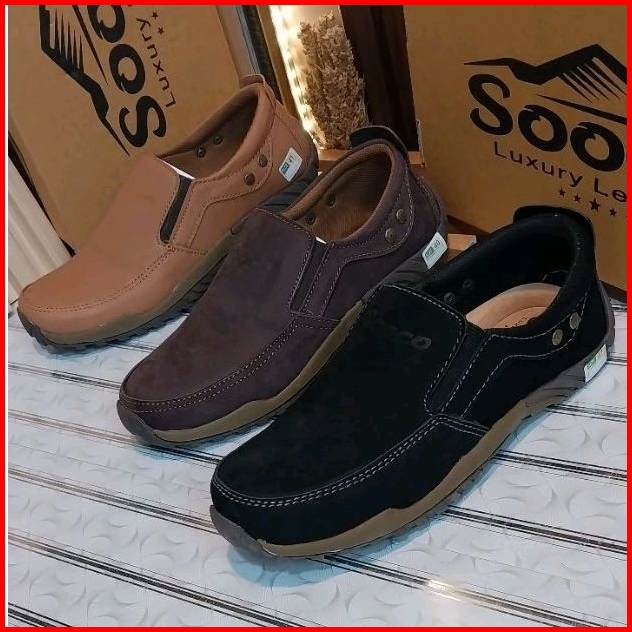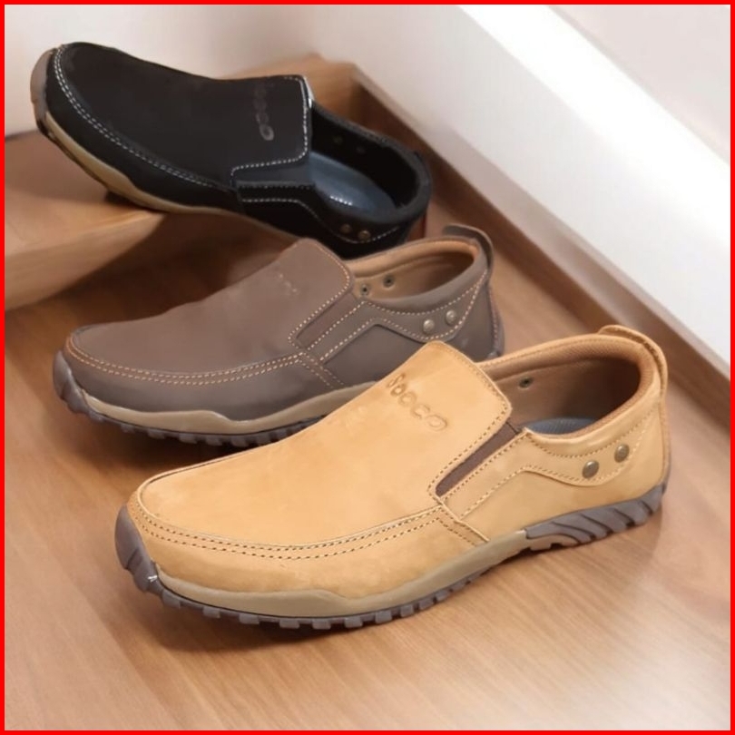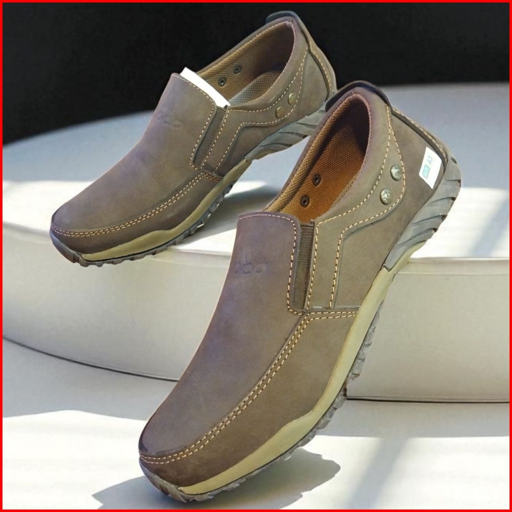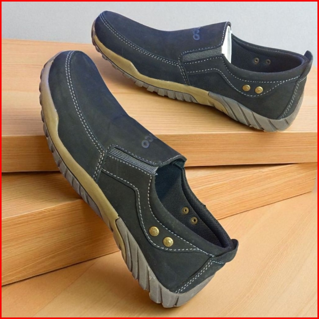 Sepatu Pria Kulit Sapi Asli Casual Sepatu Slip On Sol Karet Lentur Berkualitas