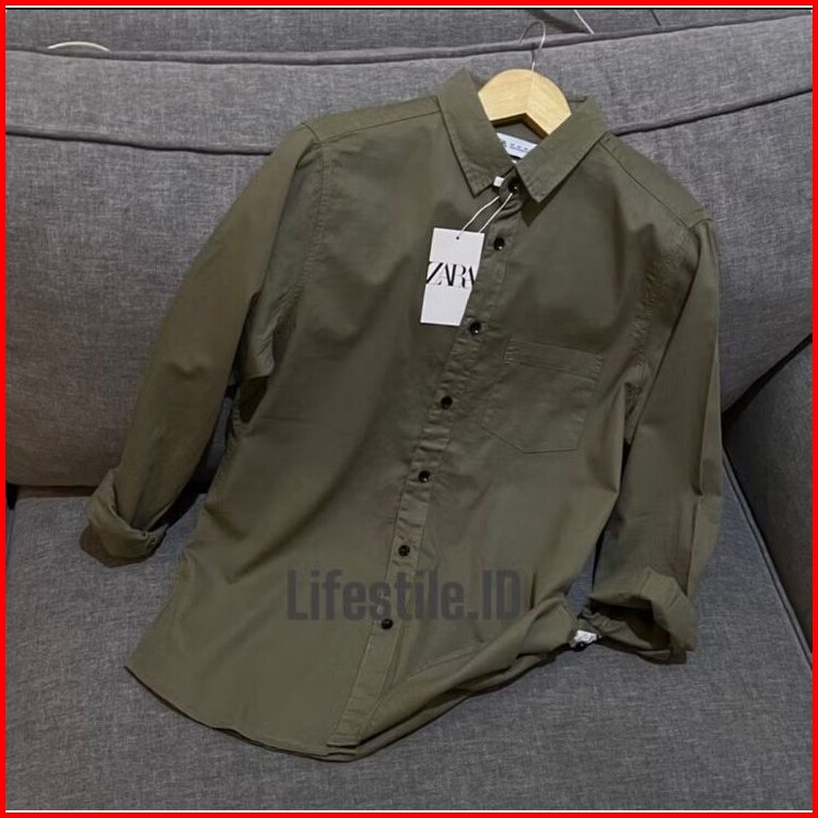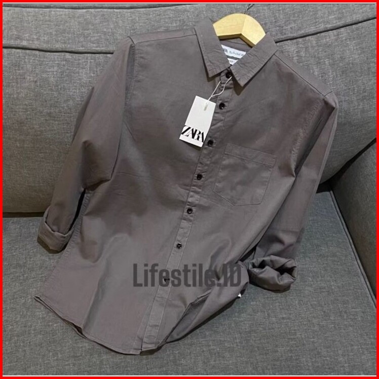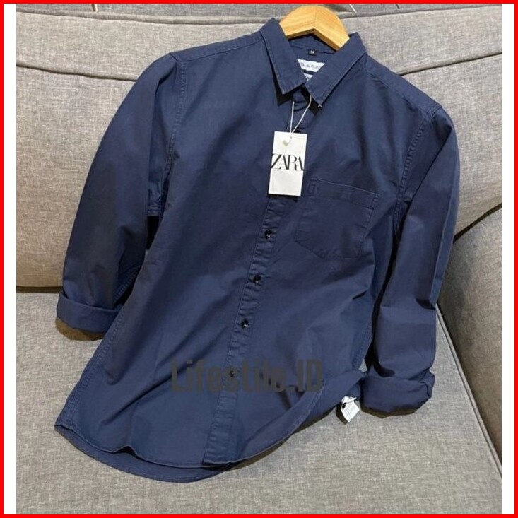 Kemeja Polos Catton Zara Panjang Pria Kemeja Slim Pria Kerja Kemeja Formal Krah Pria Kemeja Fashion