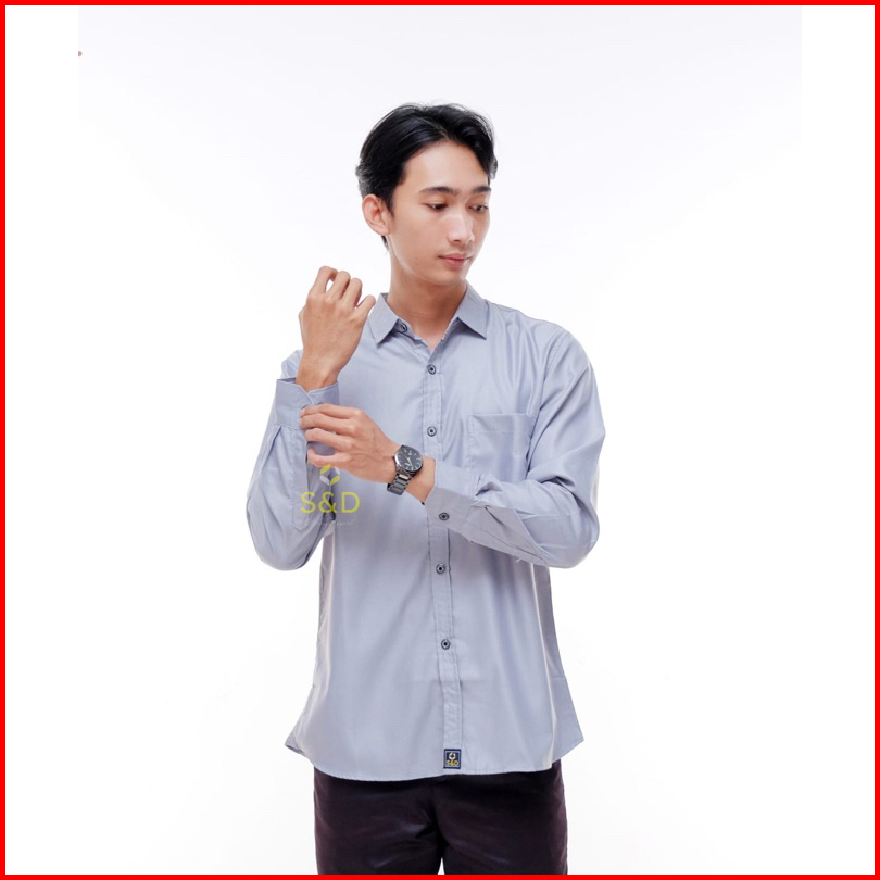 Kemeja Pria Polos Lengan Panjang Slimfit Bahan Toyobo Royal Mix