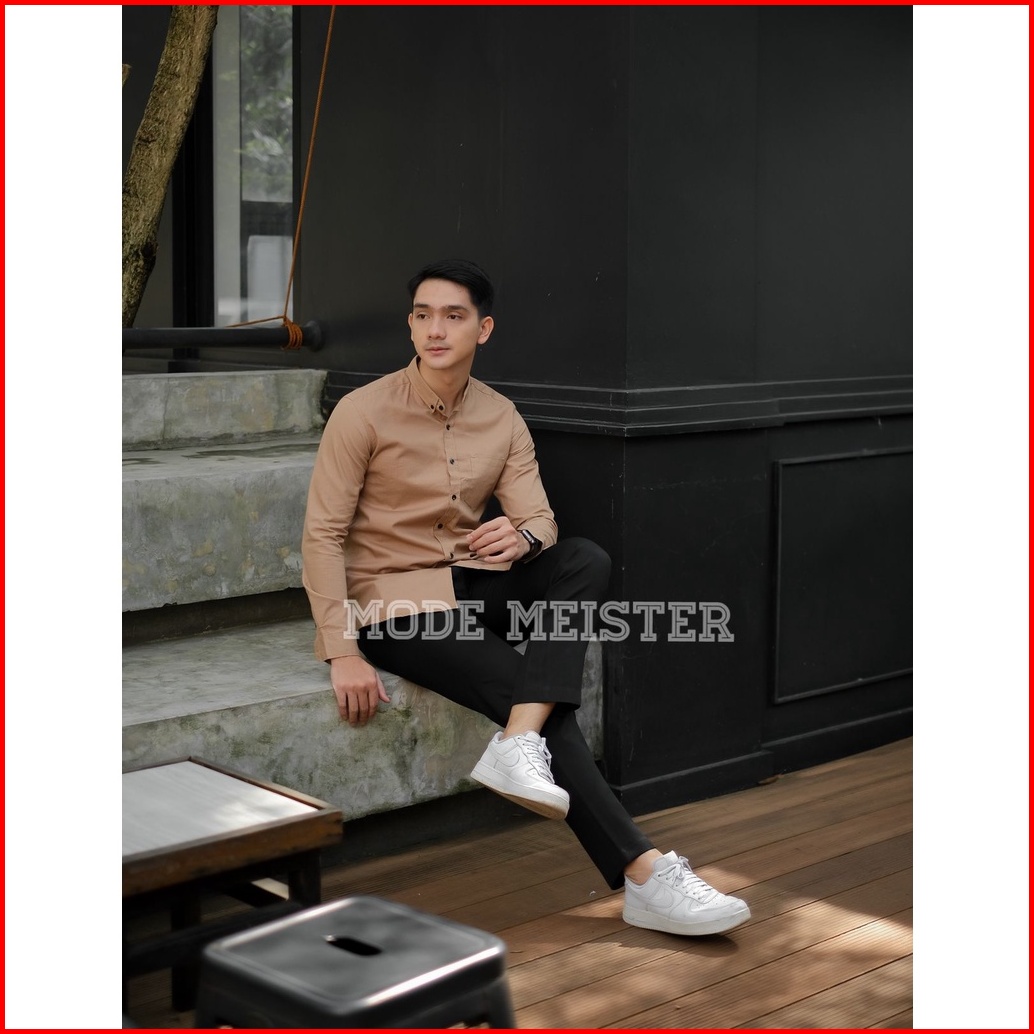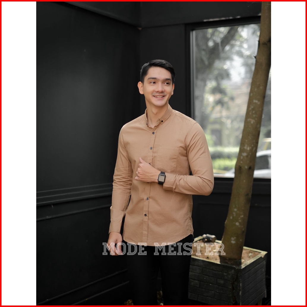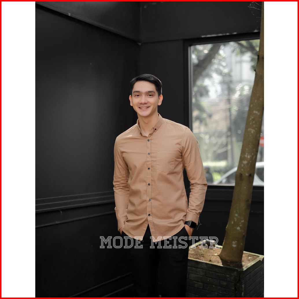 Kemeja Polos Pria Lengan Panjang Kemeja Kasual Pria Warna Mocca