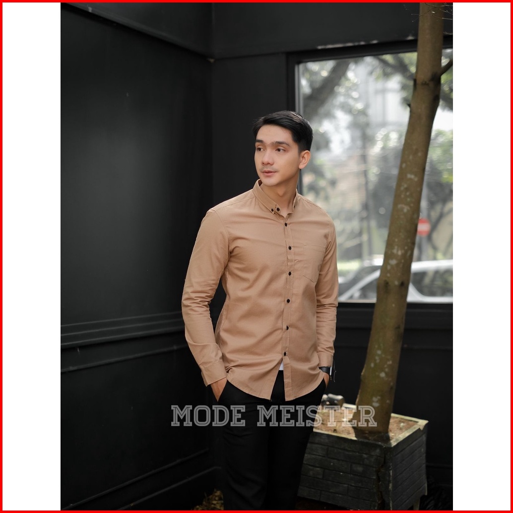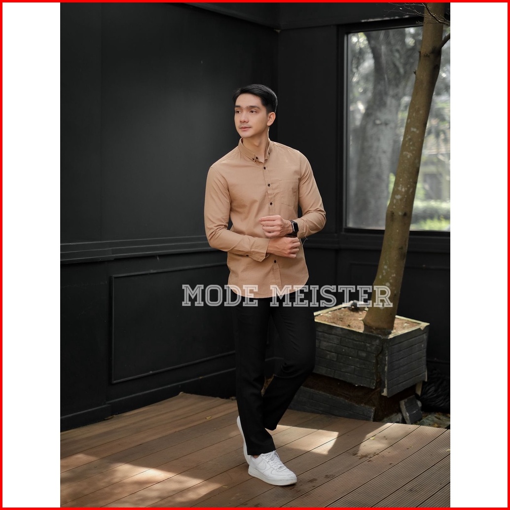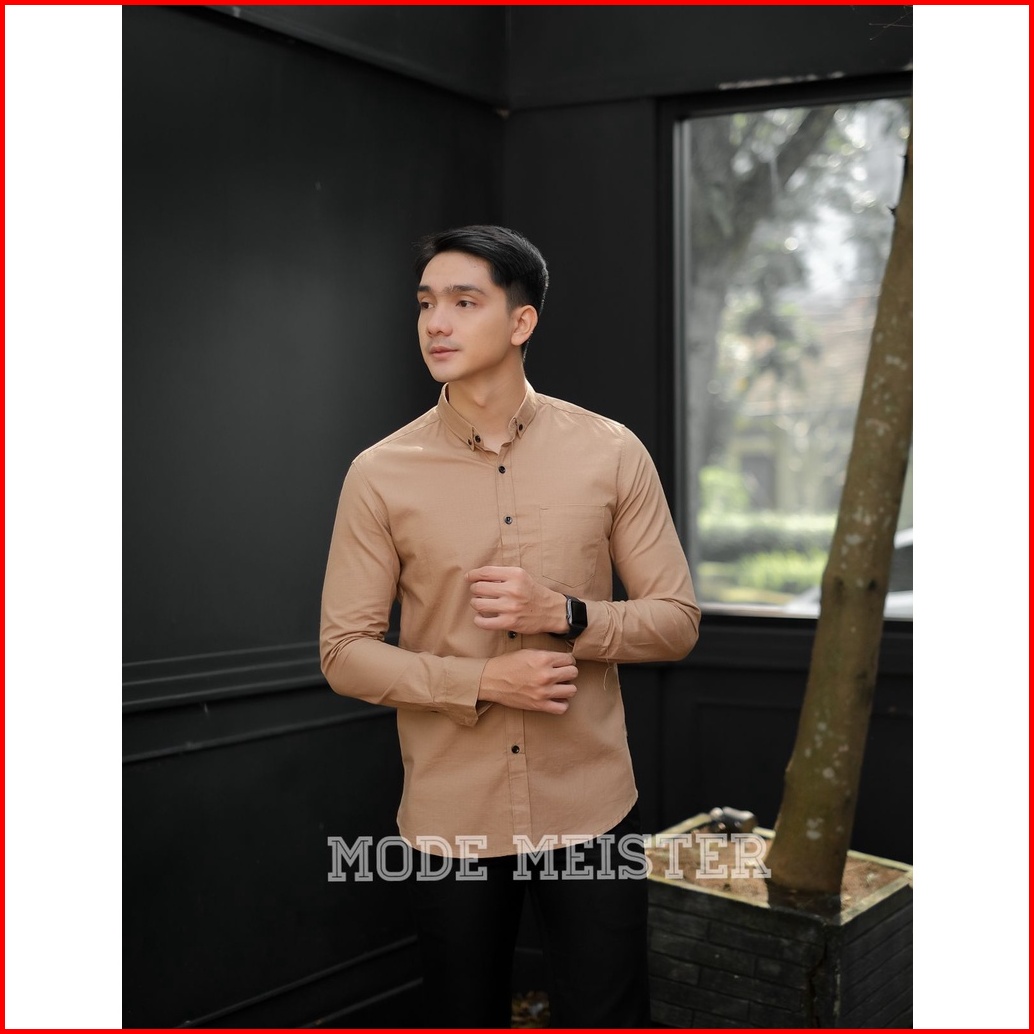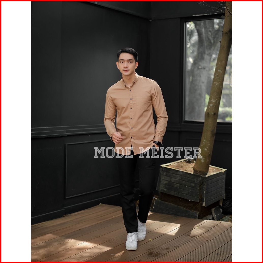 Kemeja Polos Pria Lengan Panjang Kemeja Kasual Pria Warna Mocca
