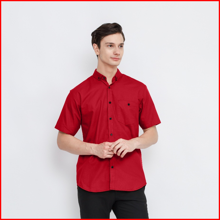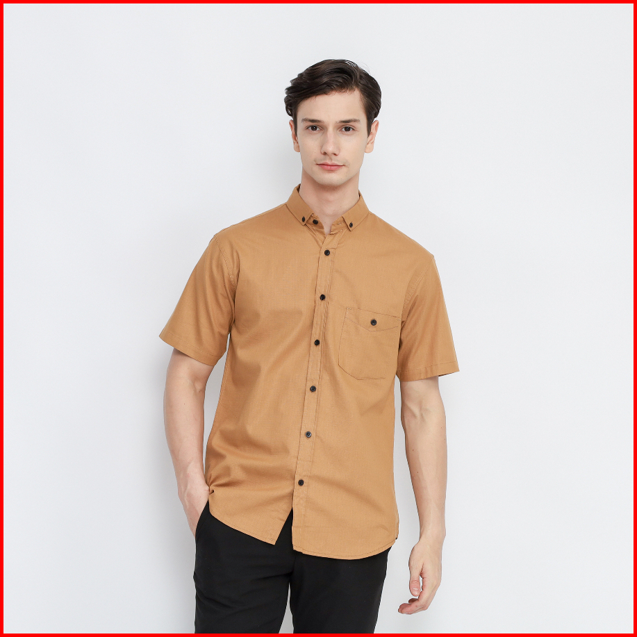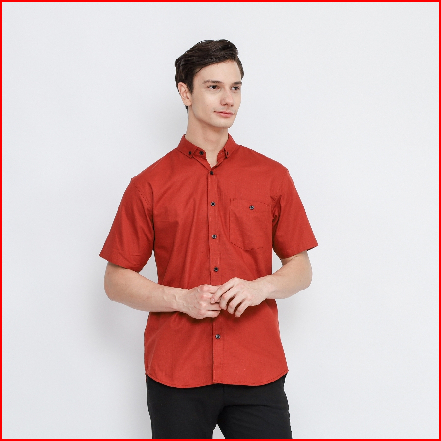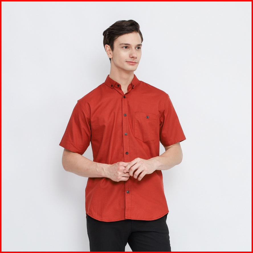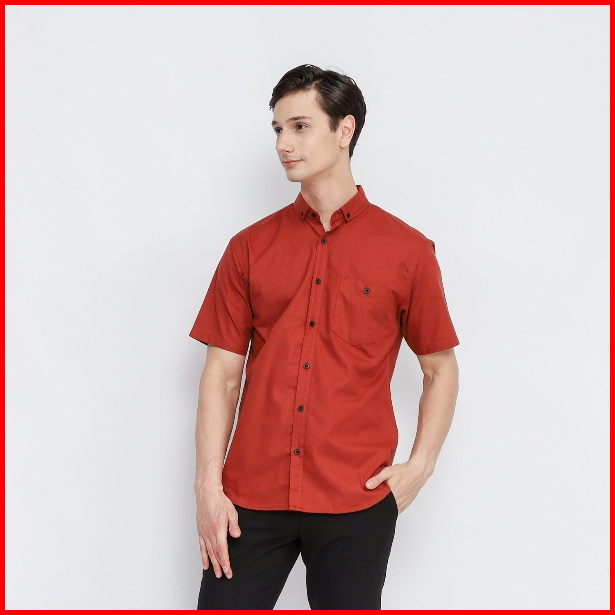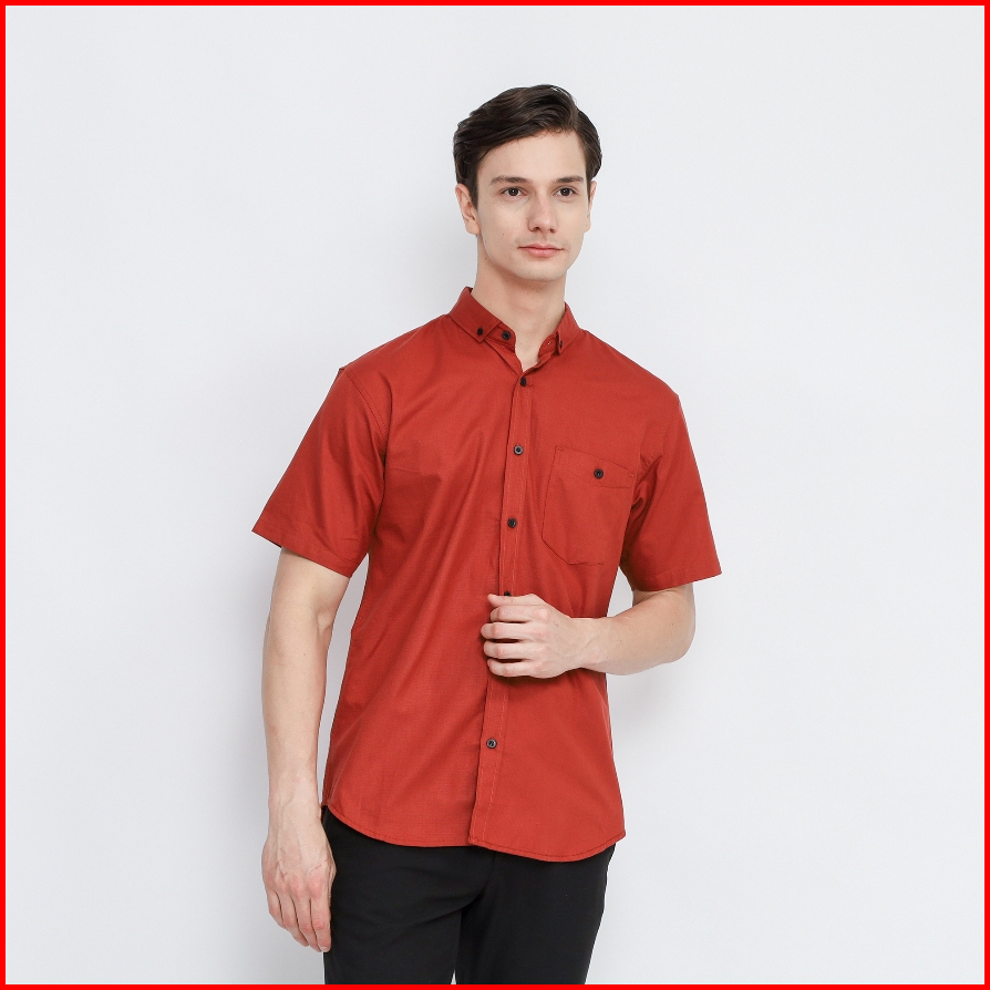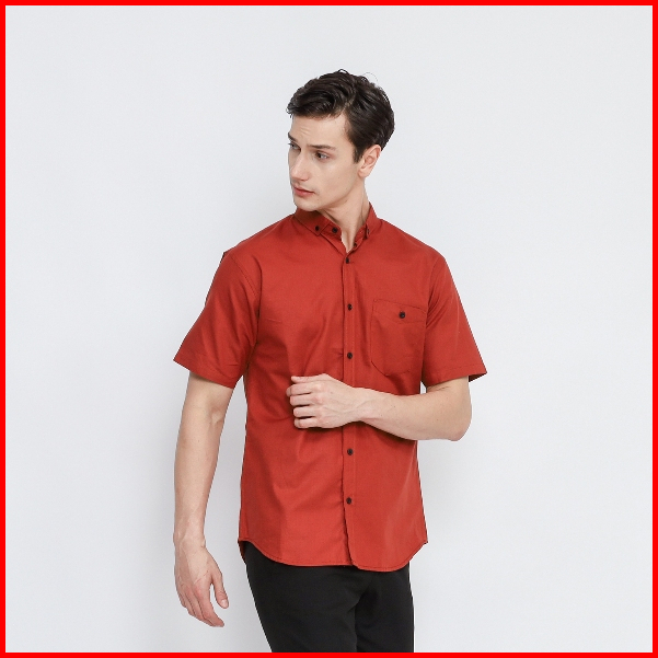 Kemeja Polos Pria Lengan Pendek Warna Terracotta Kemeja Pria Terracotta Pria Slimfit High Quality