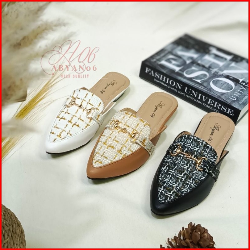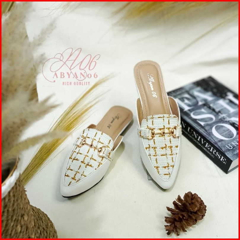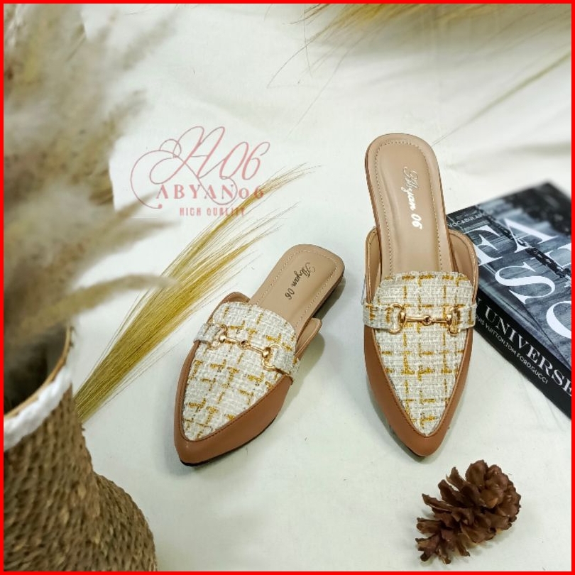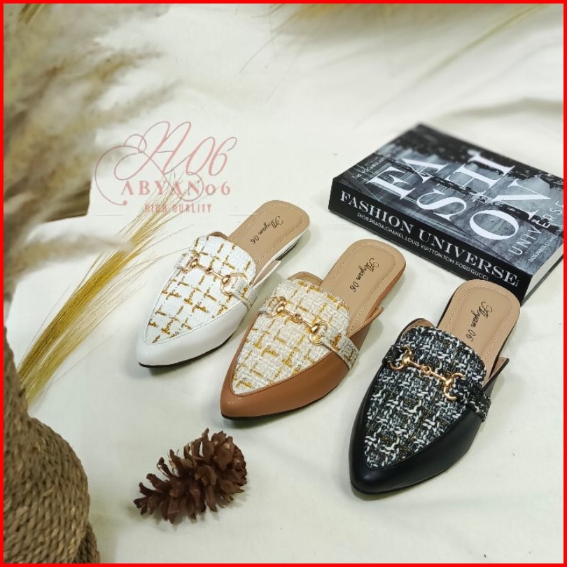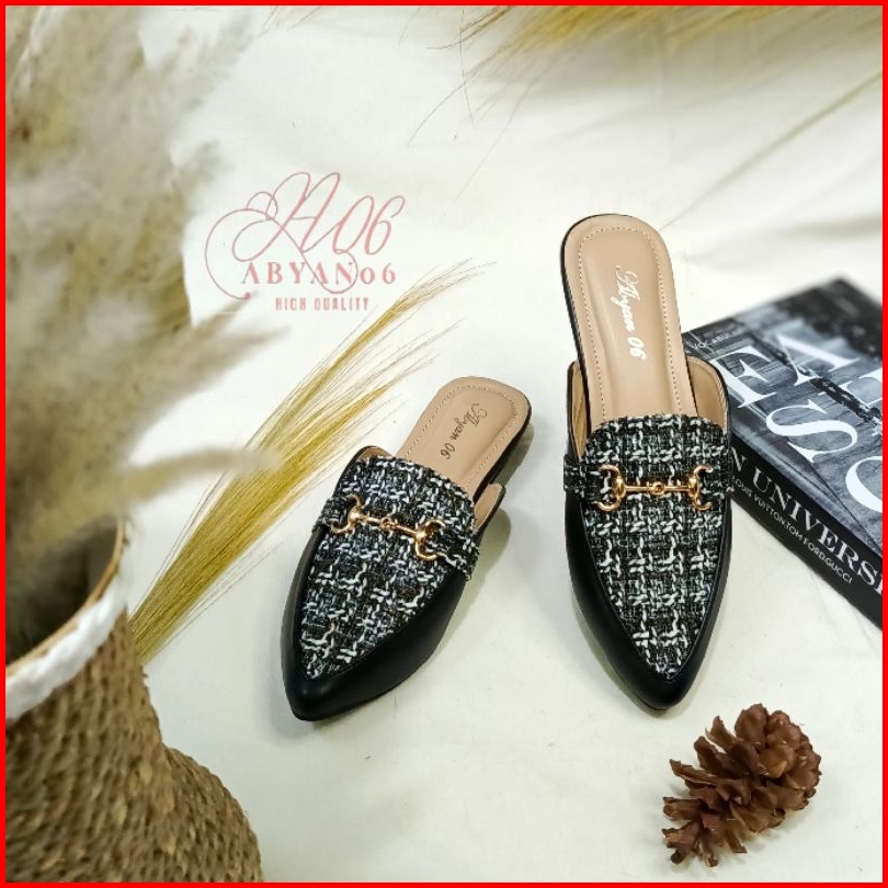 A06 Bianca Sandal Mules Wanita Flat Heels Hak 3 Cm Yefta