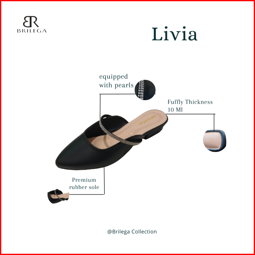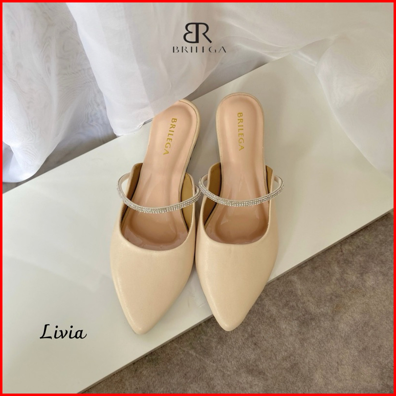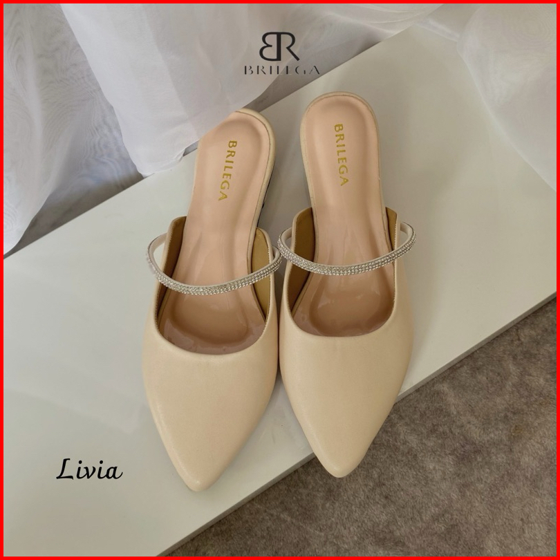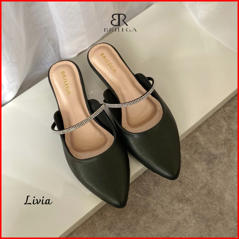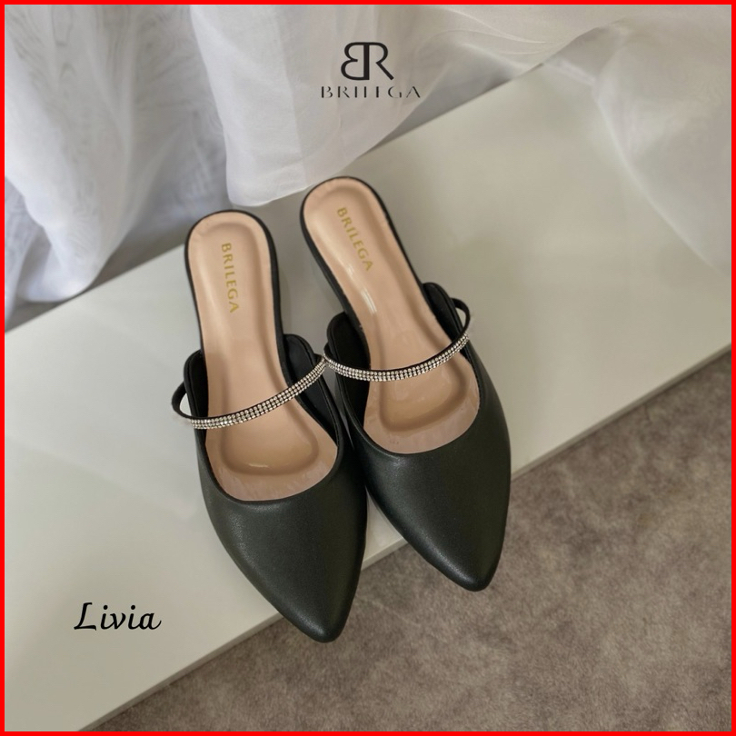 Brilega Livia Sandal Mules Wanita Hak 2cm Sandal Bustong Wanita Hak Tahu Slop Formal Casual Tersedia Size 36-41 Sendal B