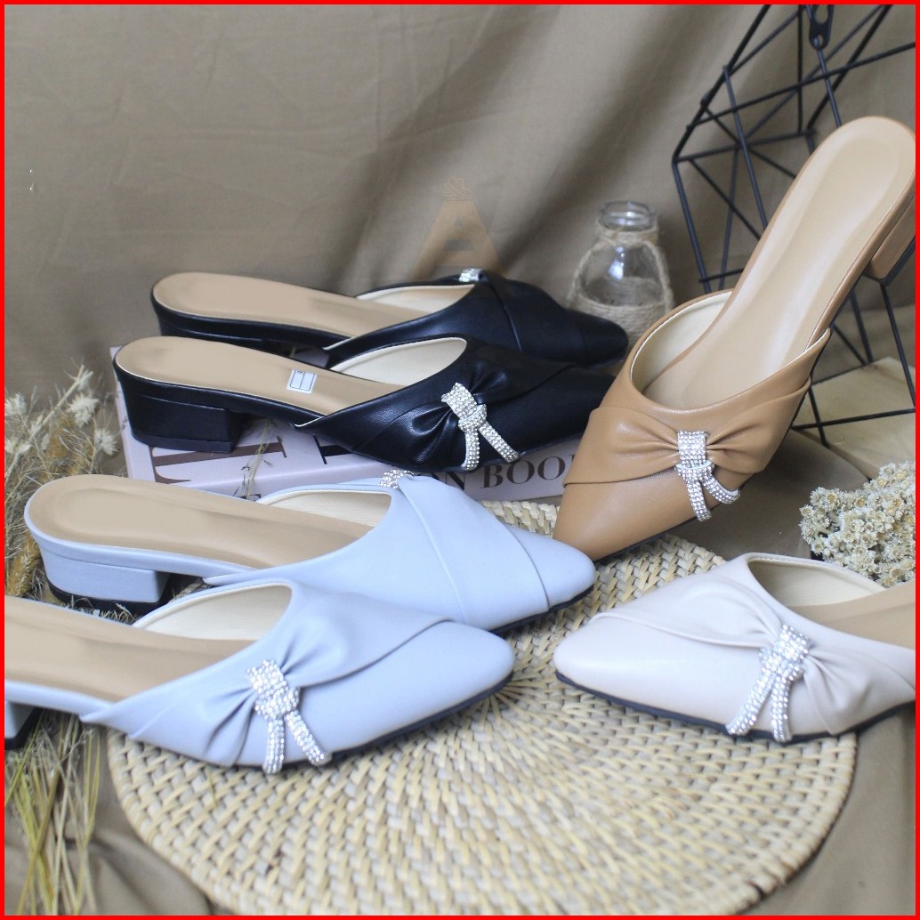 As Sandal Heels Wanita Pita Samping Formal Hak 3cm