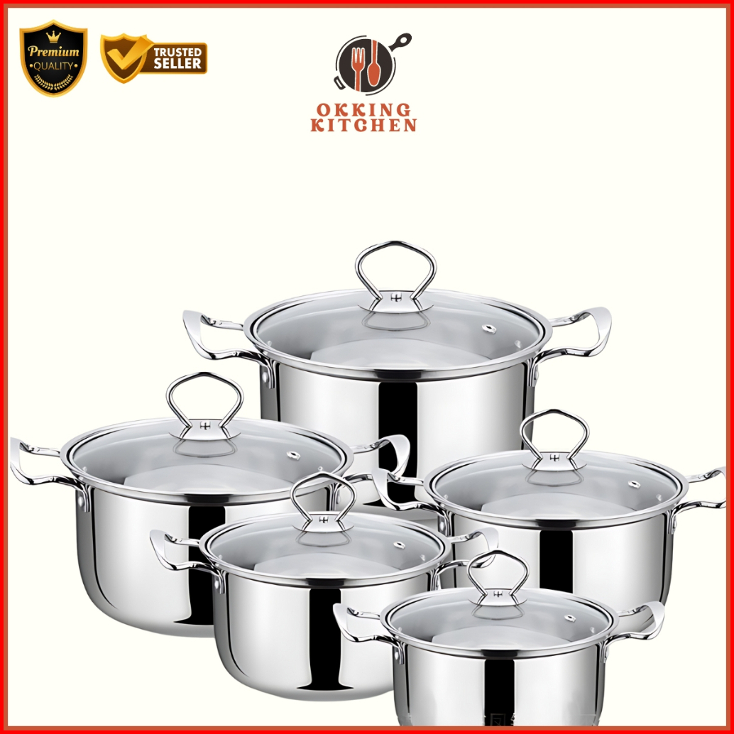 Panci Dan Steamer Set Stainless Tebal 5 Set Soup Pot Dengan Tutup Kaca Hu07