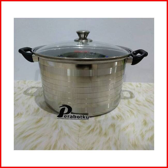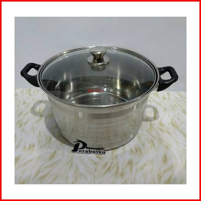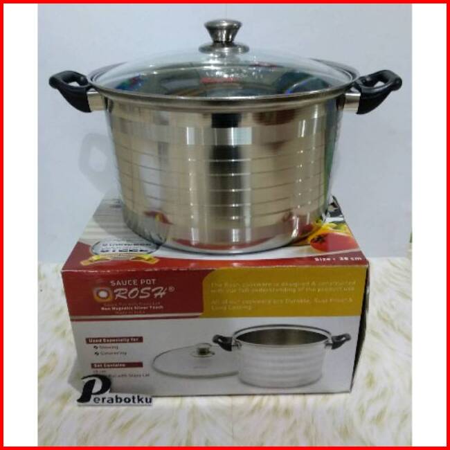 Panci Kuping 28 Cm Stainless Stenless Tutup Kaca Tebal Rosh