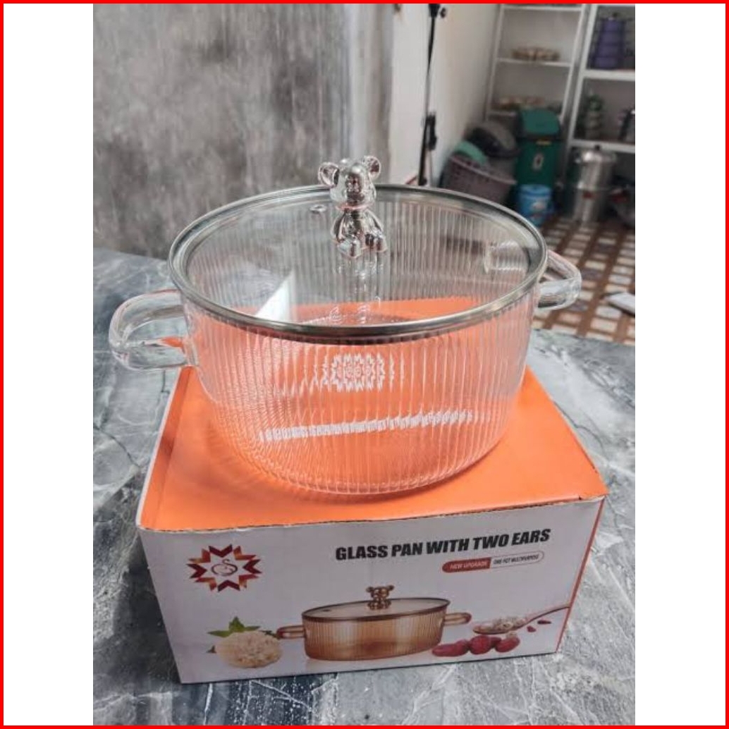 Panci Sop Kaca Kuping Borosilicate 1.5 Liter Panci Kaca Anti Panas Bisa Untuk Masak Pot Panci Masak