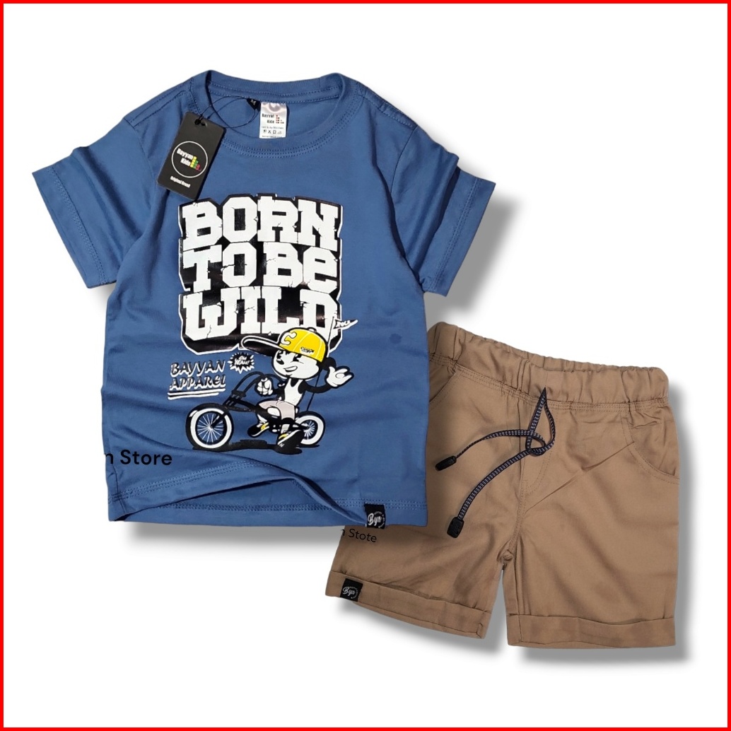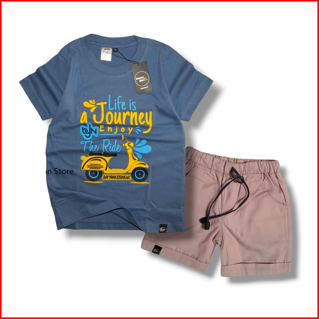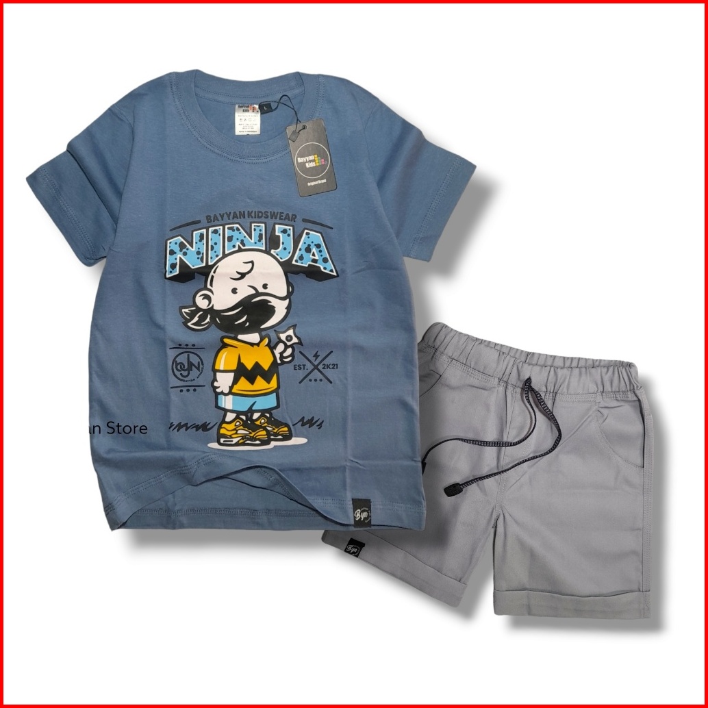 Bayyan Setelan Kaos Anak Laki Laki Umur 1 - 8 Tahun Bahan Coton Sablon Plastisol