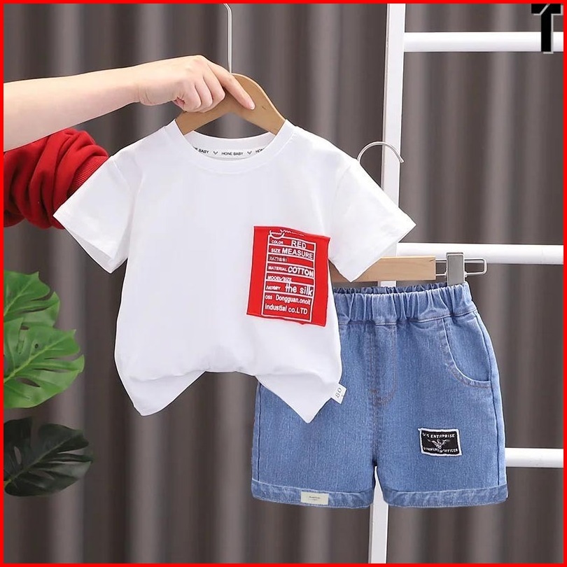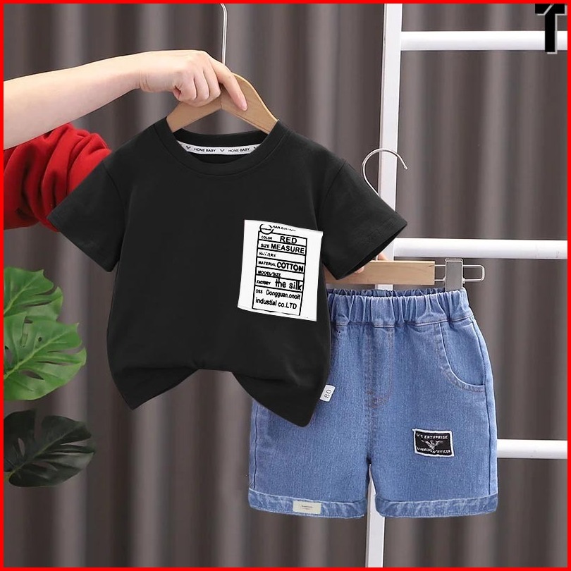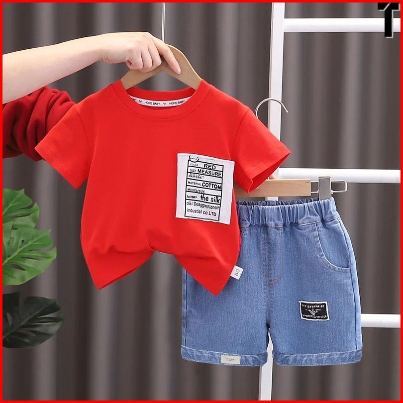 Setelan Anak 1-5 Tahun Denim Polos Pakaian Anak Laki Laki Setelan Baju Celana Denim Pendek Baju Anak Bangsa
