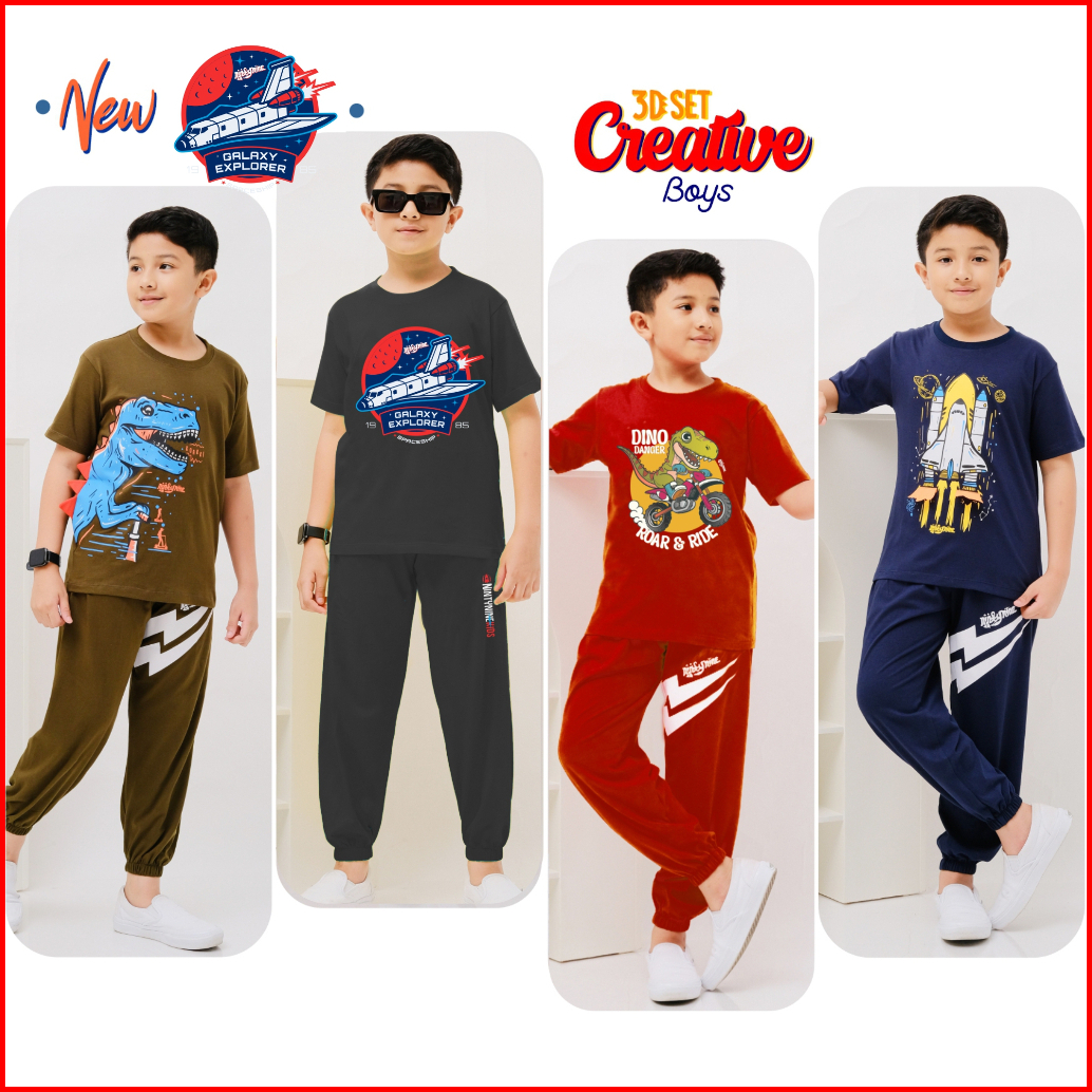 Setelan Anak Laki-laki Kaos Anak 3d Keren Cotton Combed 24s Piyama Anak Celana Anak Usia 4 - 12 Tahun Creativy Bahan Pre