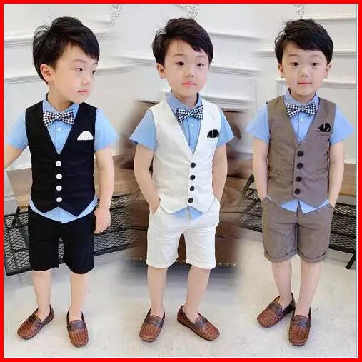 Set Vestfour Ot Setelan Anak Laki-laki Kemeja Vest Celana Cotton Premium