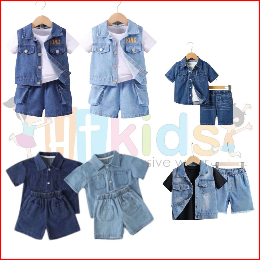 Setelan Anak Laki-laki Model Set Kemeja Jeans 1 - 5 Tahun