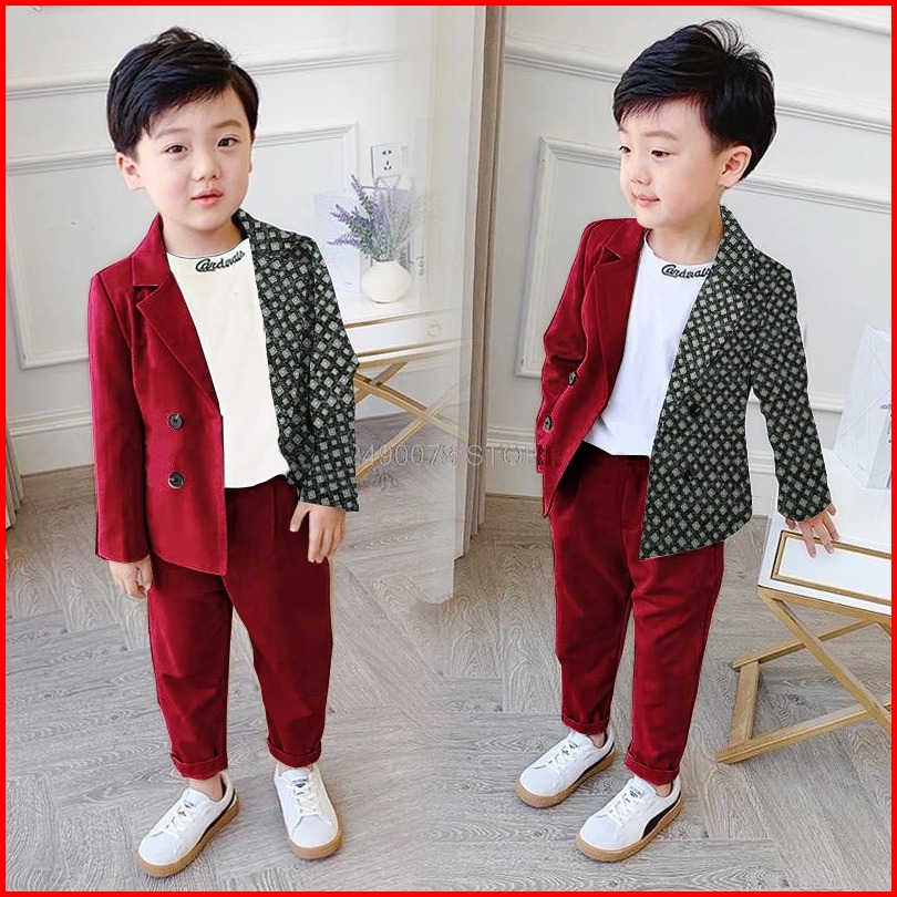 Set Carda Ot Setelan Anak Laki Laki Baju Jas Blazer Celana Katun Stretch