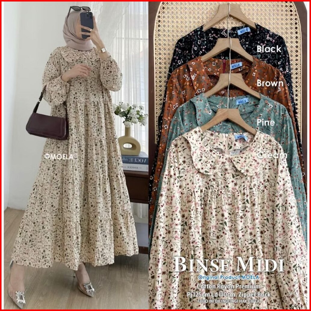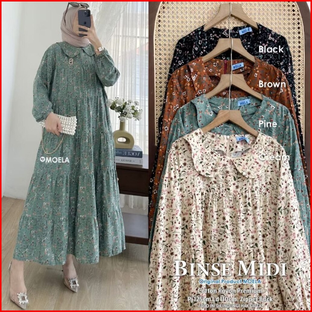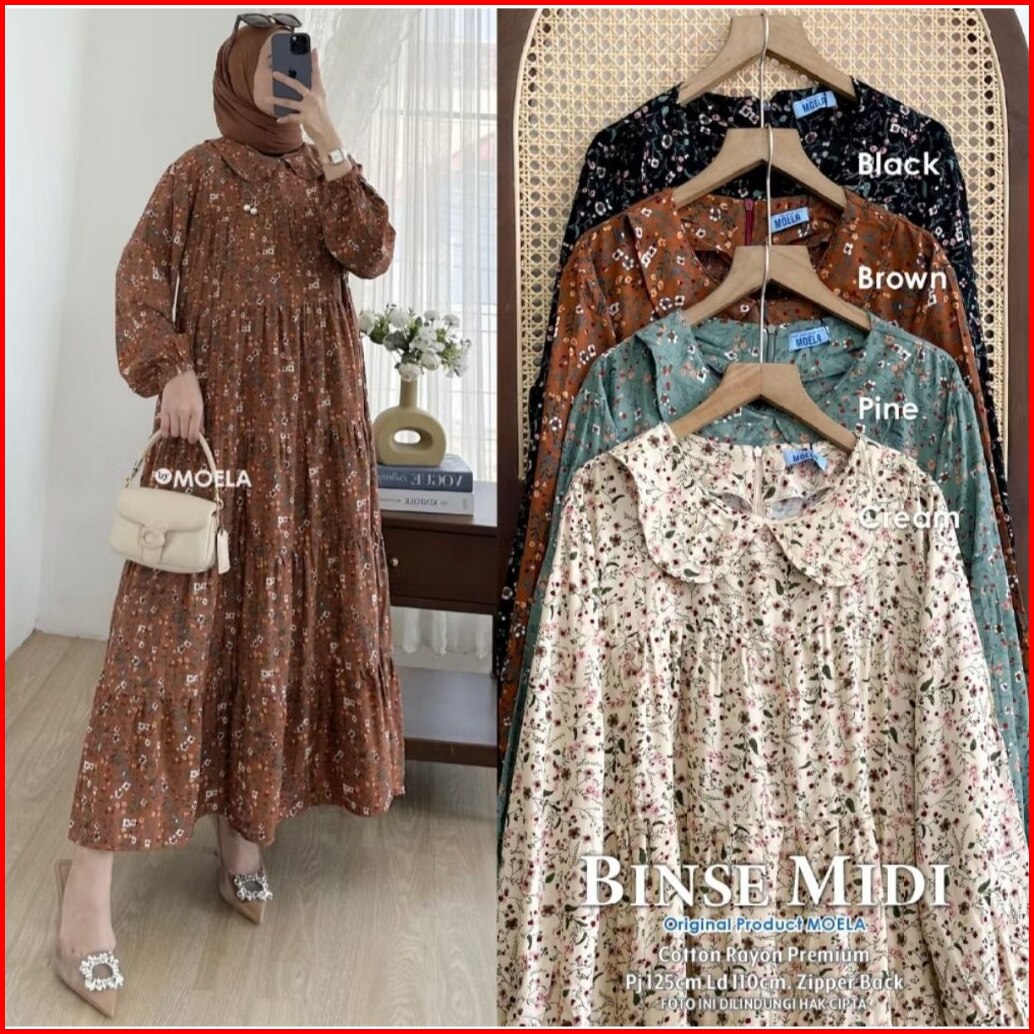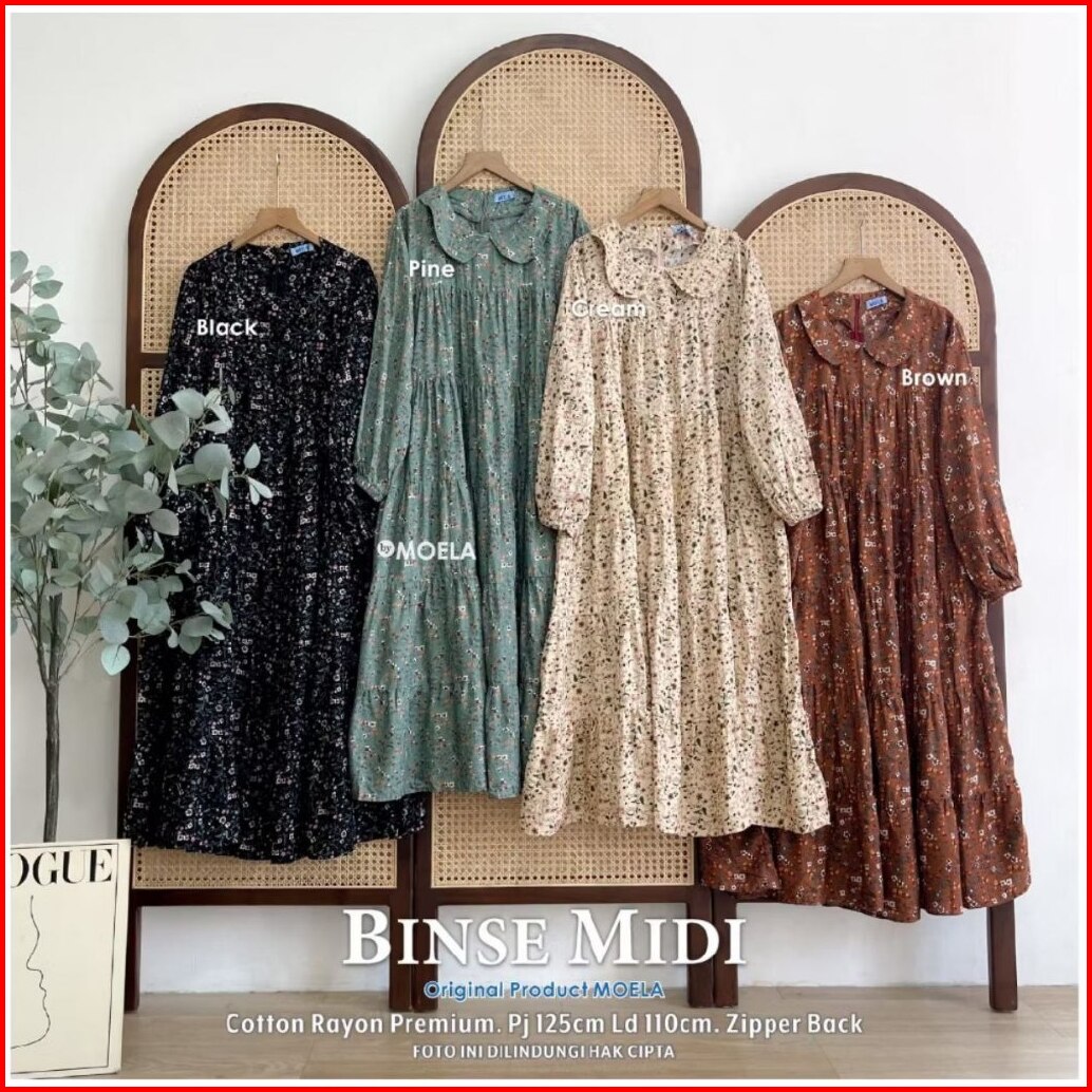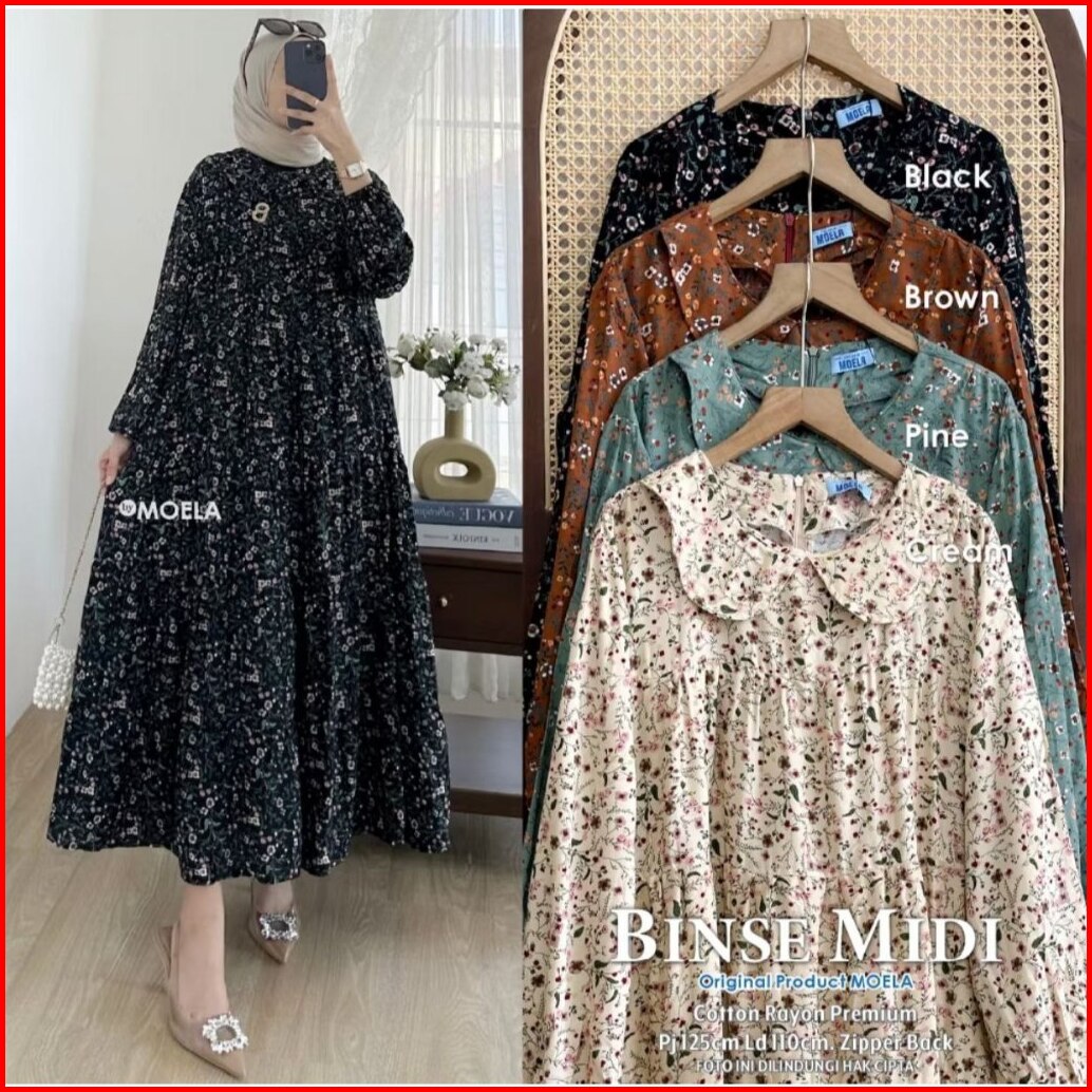 Binse Midi Dress Cotton Rayon Premium Adem Halus Nyaman Ori