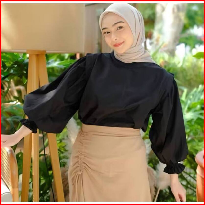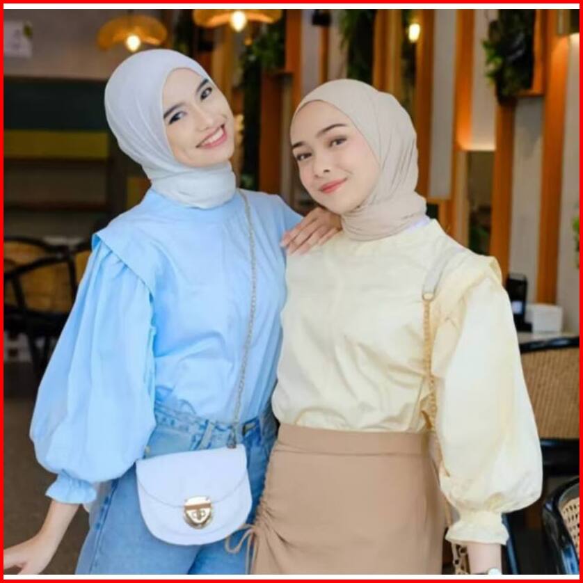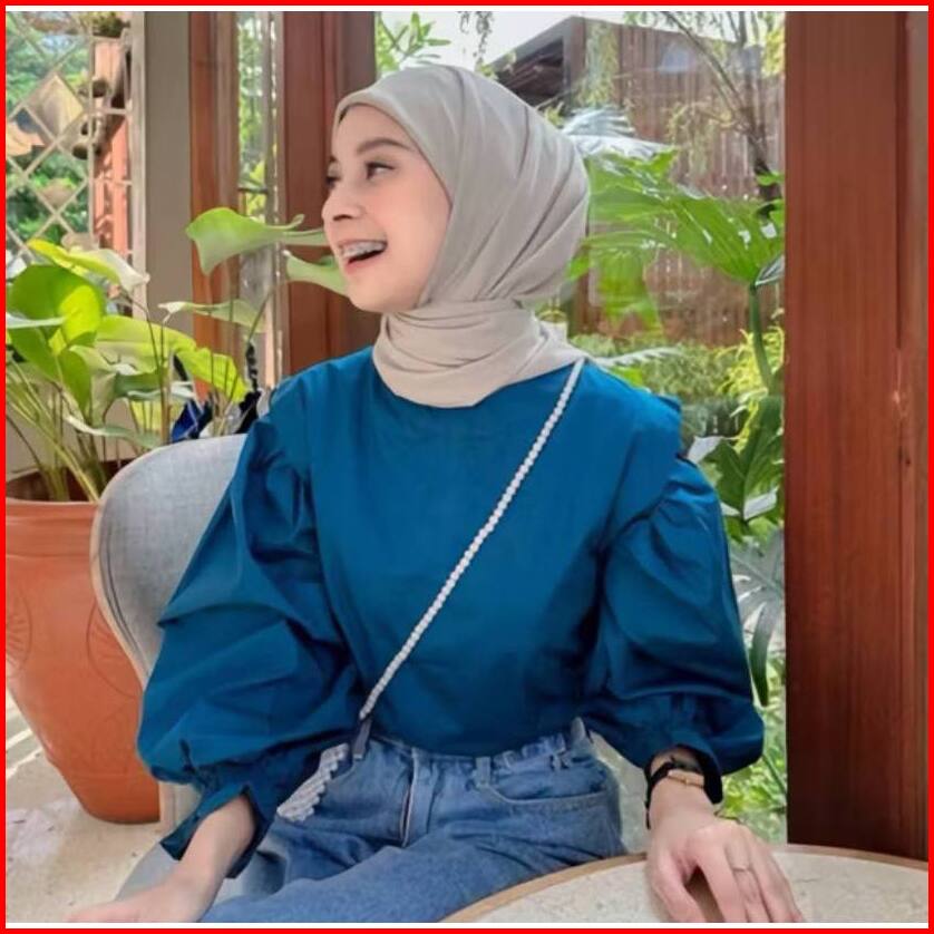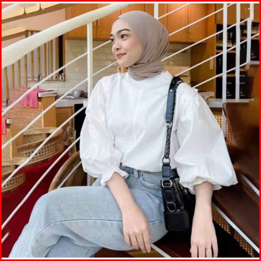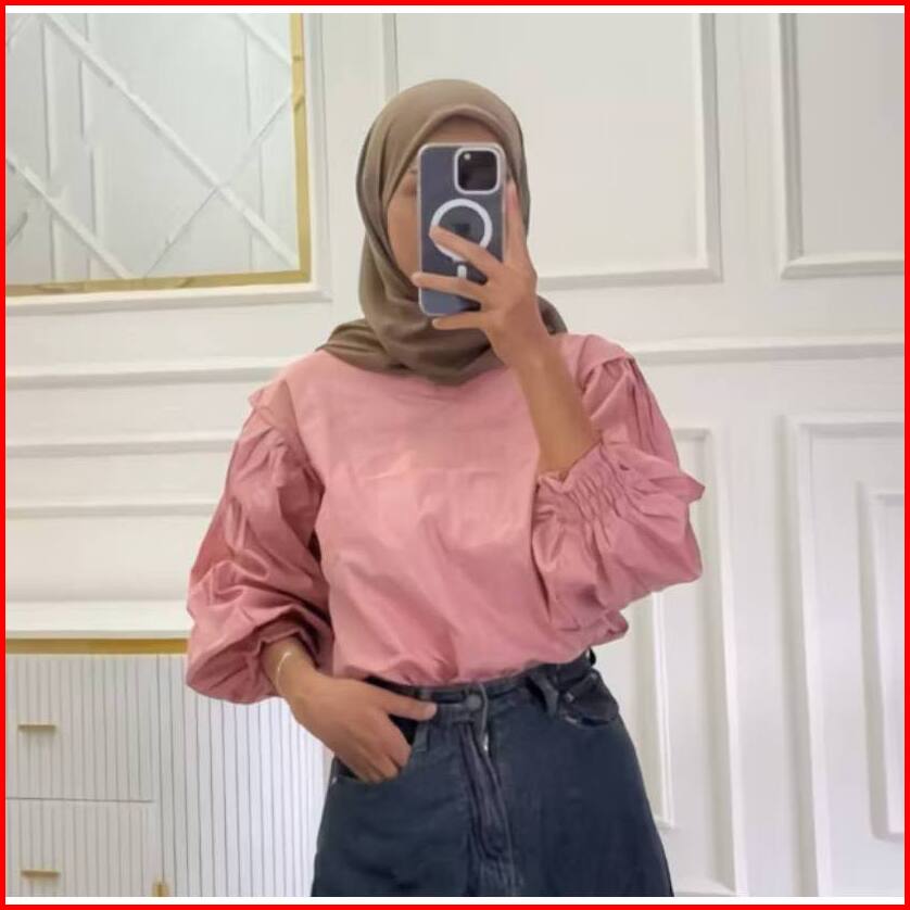 Moni Blouse Katun Linen - Blouse Puffy Lengan Balon - Atasan Wanita Korean Style